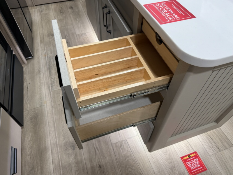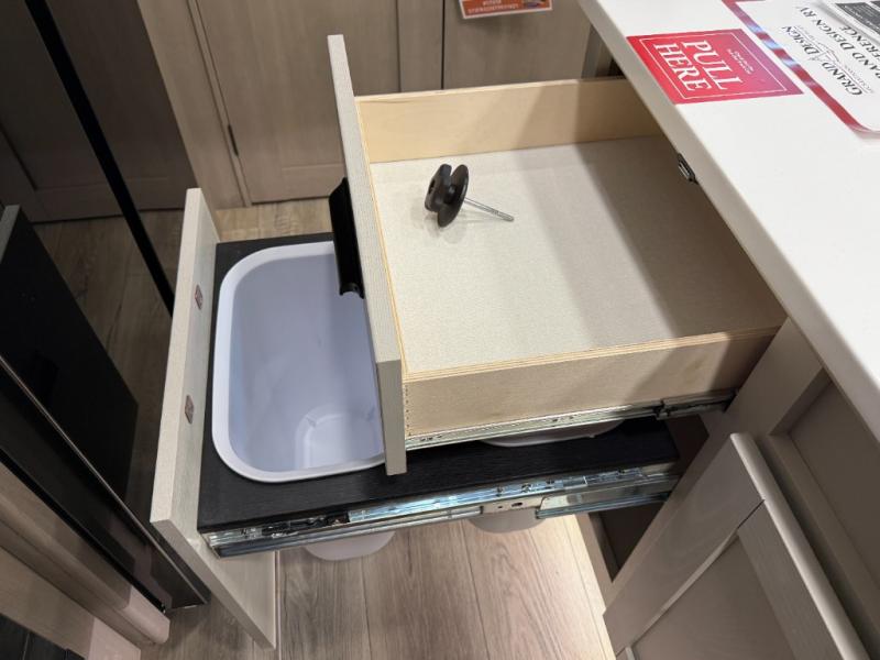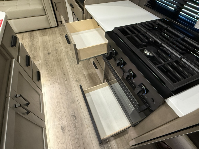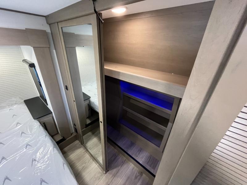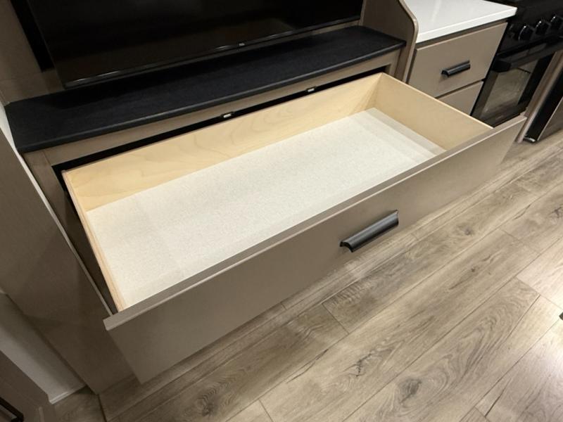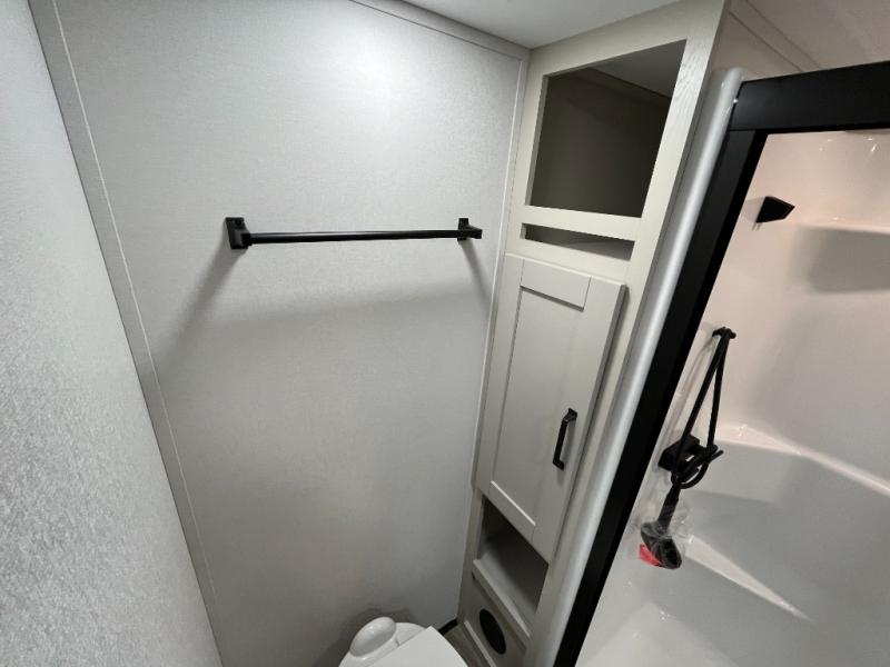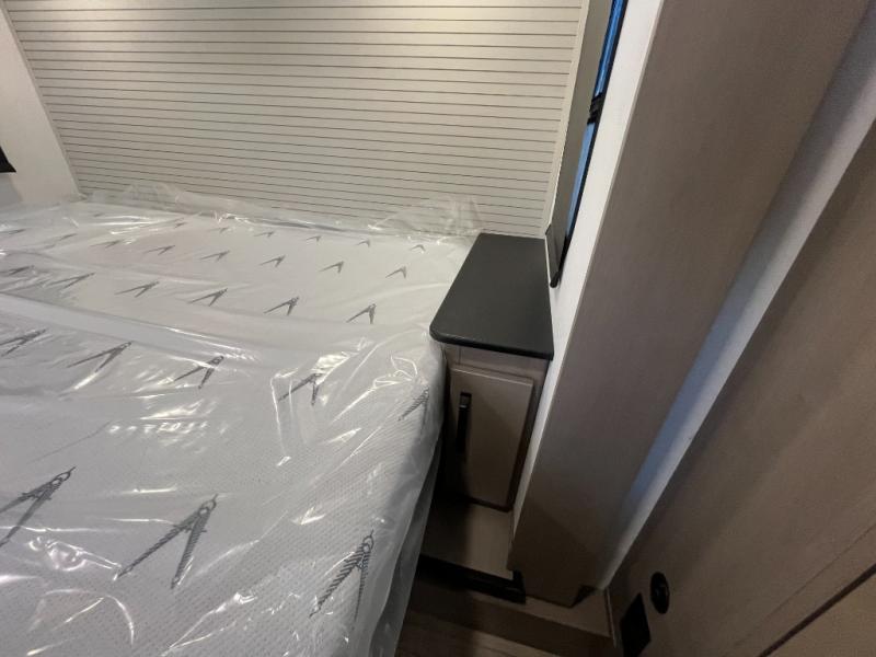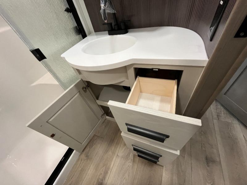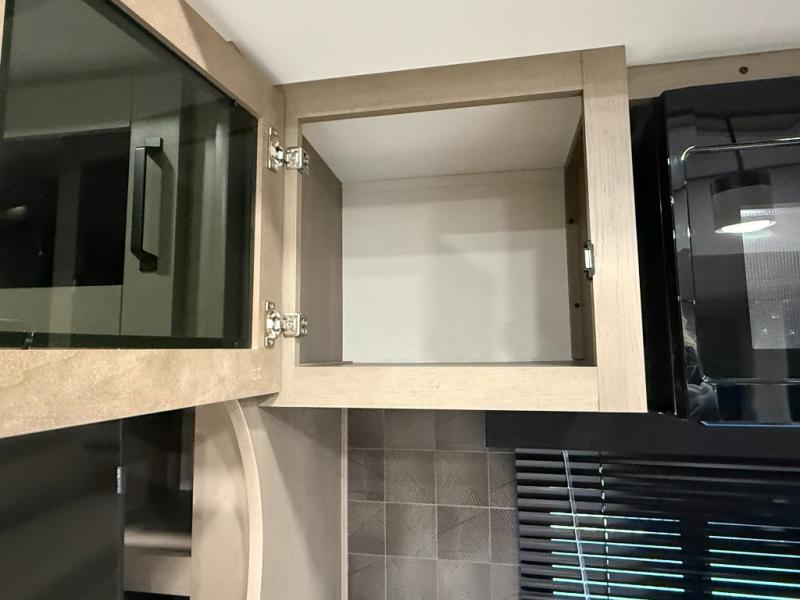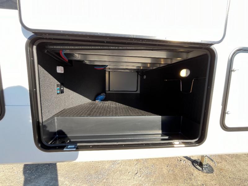 Travel to see new state parks, RV resorts or your family in other states as you tow this fifth wheel to each destination! You will enjoy comfort and convenience, plus a place to work, and be able to offer extra sleeping space for friends and family when they visit. The middle extra room provides a tri-fold sofa slide, a desk, a wardrobe, plus a 64" x 88" upper bed loft area with access from the hallway. The full bathroom will keep everyone refreshed, and the front bedroom allows you to sleep on a queen bed slide or choose the king option. And you will love the front wardrobe, the dresser, and the option to add a washer/dryer. The main living and kitchen area provides plenty of seating from the rear tri-fold sofa, the booth dinette or swivel dinette option, and the theater seats with cupholders. And the kitchen island, appliances, and large pantry allow you to take everything you need with you.