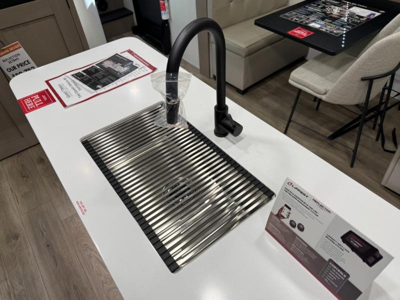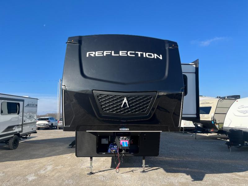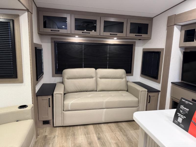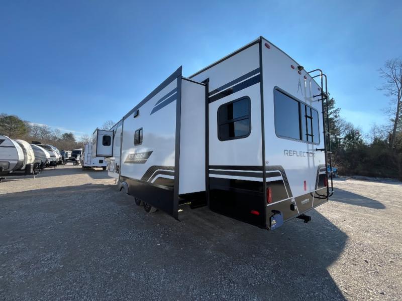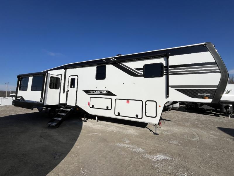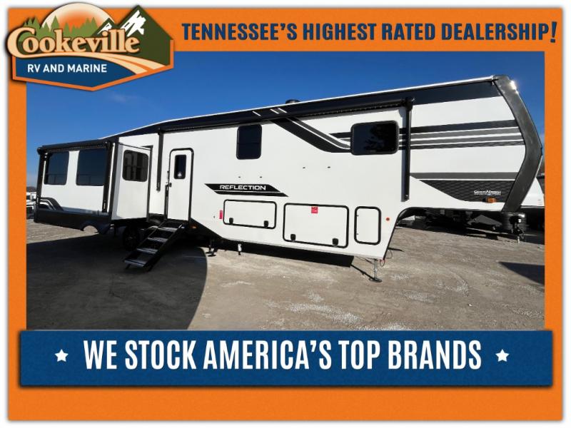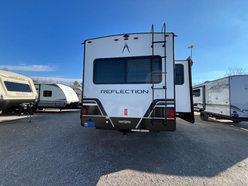 With any Reflection fifth wheel by Grand Design, you will have a solar panel for off-grid camping and a 60 amp charge controller and inverter prep, a Universal All-In-One docking station, unobstructed pass-through storage, and Goodyear Endurance tires. Each is constructed of gel coat exterior sidewalls, residential 5" truss rafters, walk-on roof decking, a fiberglass and radiant foil roof and front cap insulation plus laminated aluminum framed side walls, roof and end walls in slide rooms. Head inside to enjoy residential hardwood cabinet doors, premium Congoleum flooring, a spacious shower with a glass door, and many more comforts!