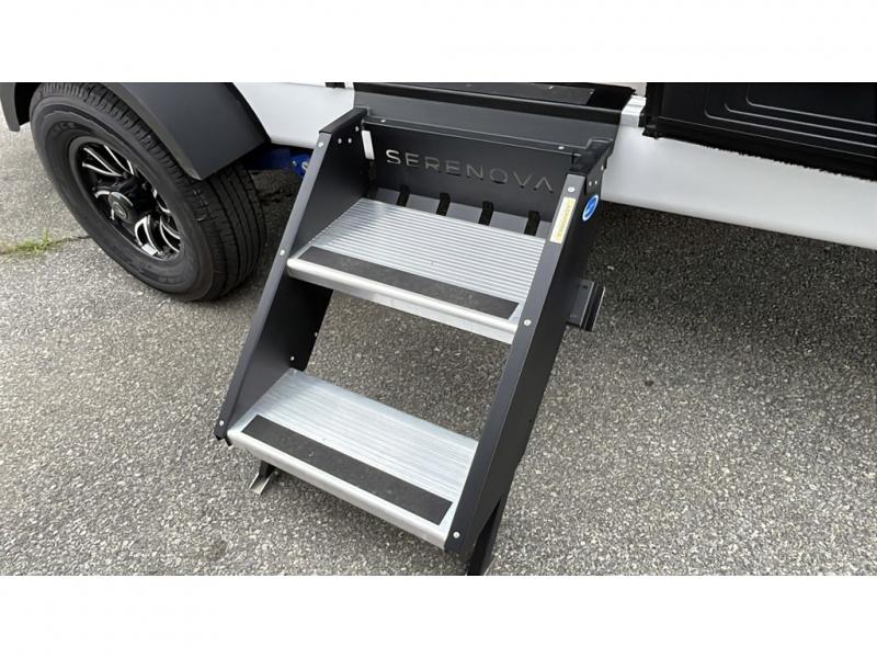 With any Serenova travel trailer by Grand Design, you will enjoy a smooth tow and at-home comforts wherever you decide to roam. There is a MORryde independent suspension plus MORryde shock, Goodyear Endurance tires, and Dexter tow assist with an anti-lock braking system and sway control for optimal handling. To help extend your camping season, there is an enclosed underbelly, a dedicated heat source with Thermafoil, heated dump valves plus thermostatically controlled 12V heating pads. Inside, you'll love the look of the imported Italian cabinetry, and there is a Klipsch whole home Bluetooth speaker so you can listen to your favorite tunes at the campground!