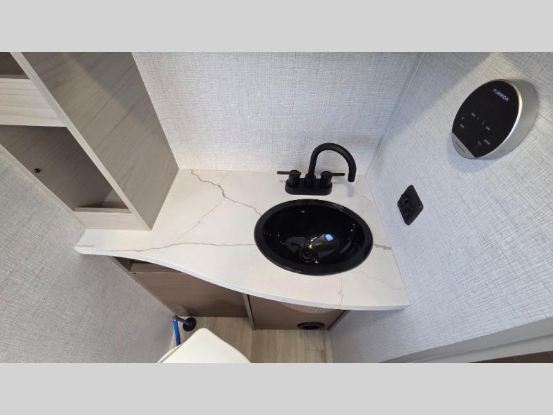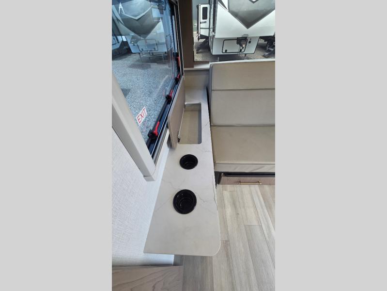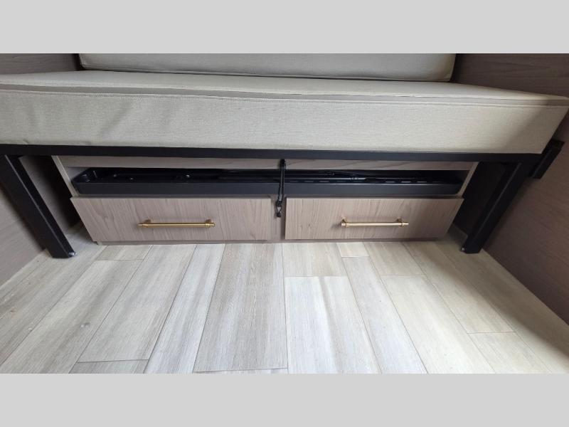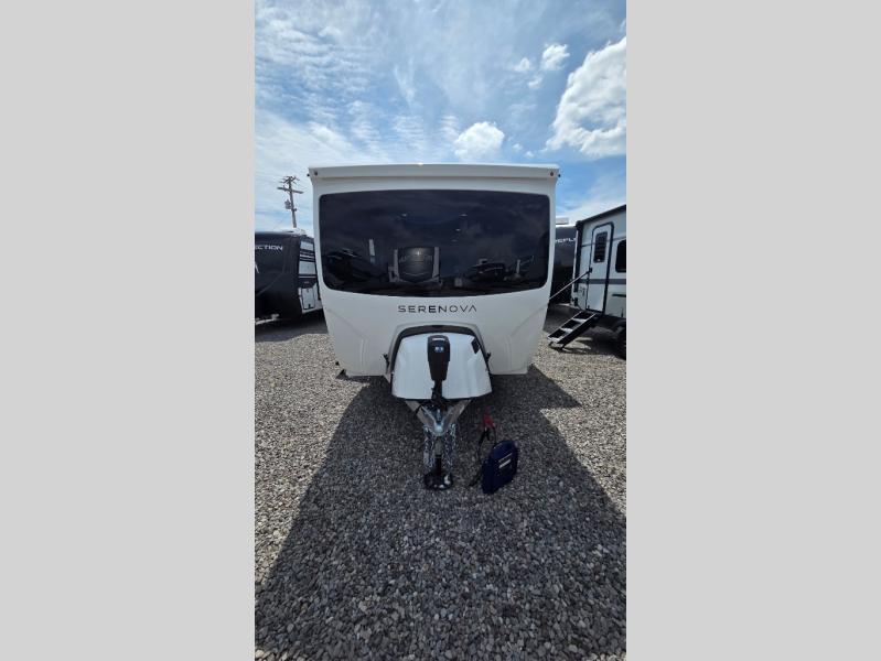 With any Serenova travel trailer by Grand Design, you will enjoy a smooth tow and at-home comforts wherever you decide to roam. There is a MORryde independent suspension plus MORryde shock, Goodyear Endurance tires, and Dexter tow assist with an anti-lock braking system and sway control for optimal handling. To help extend your camping season, there is an enclosed underbelly, a dedicated heat source with Thermafoil, heated dump valves plus thermostatically controlled 12V heating pads. Inside, you'll love the look of the imported Italian cabinetry, and there is a Klipsch whole home Bluetooth speaker so you can listen to your favorite tunes at the campground!