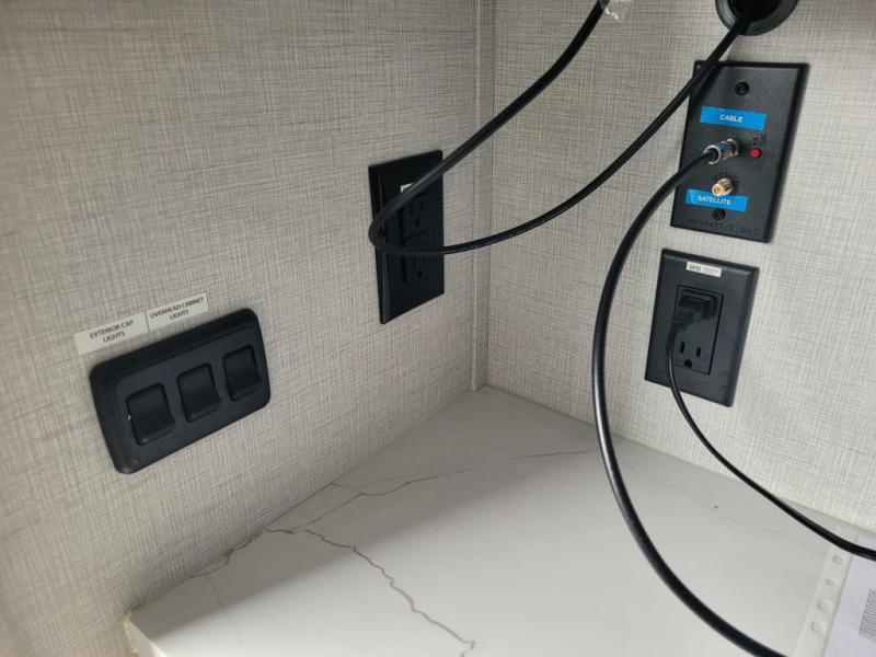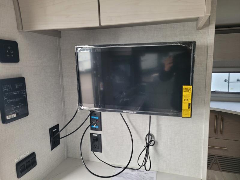 You'll love camping in this spacious and versatile travel trailer. There is a 60" x 76" flip bed up front that you can fold away during the day to relax on the sofa. An induction cooktop and convection microwave within the slide out will let you make meals each day, and you'll also find a wardrobe and pantry here for added storage. The rear corner kitchen includes ample counter space and overhead storage for dishes, spices and more. After a day outdoors, you can clean up in the rear corner bath, complete with a residential walk-in shower, bath skylight, 12V power vent fan plus more!