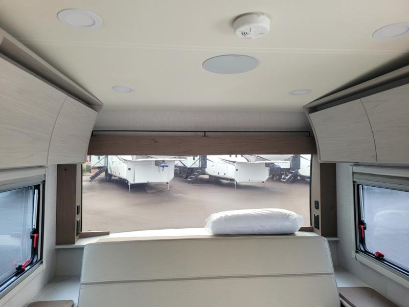 With any Serenova travel trailer by Grand Design, you will enjoy a smooth tow and at-home comforts wherever you decide to roam. There is a MORryde independent suspension plus MORryde shock, Goodyear Endurance tires, and Dexter tow assist with an anti-lock braking system and sway control for optimal handling. To help extend your camping season, there is an enclosed underbelly, a dedicated heat source with Thermafoil, heated dump valves plus thermostatically controlled 12V heating pads. Inside, you'll love the look of the imported Italian cabinetry, and there is a Klipsch whole home Bluetooth speaker so you can listen to your favorite tunes at the campground!