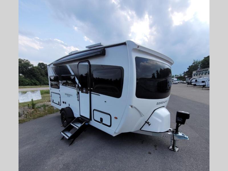 With any Serenova travel trailer by Grand Design, you will enjoy a smooth tow and at-home comforts wherever you decide to roam. There is a MORryde independent suspension plus MORryde shock, Goodyear Endurance tires, and Dexter tow assist with an anti-lock braking system and sway control for optimal handling. To help extend your camping season, there is an enclosed underbelly, a dedicated heat source with Thermafoil, heated dump valves plus thermostatically controlled 12V heating pads. Inside, you'll love the look of the imported Italian cabinetry, and there is a Klipsch whole home Bluetooth speaker so you can listen to your favorite tunes at the campground!