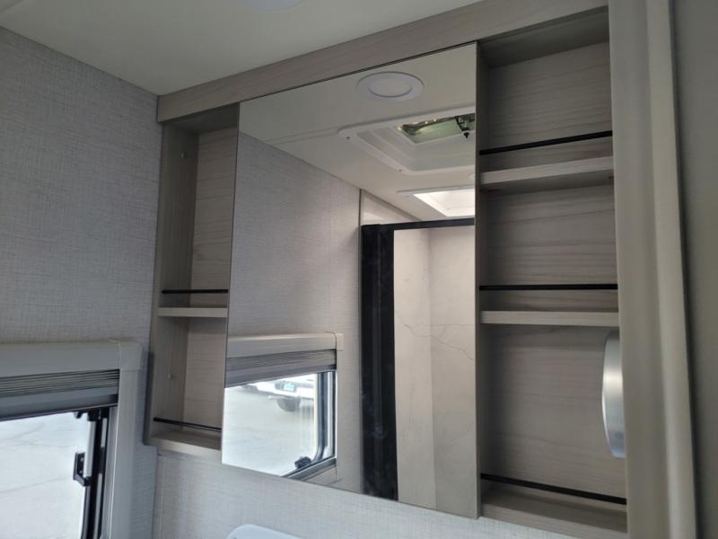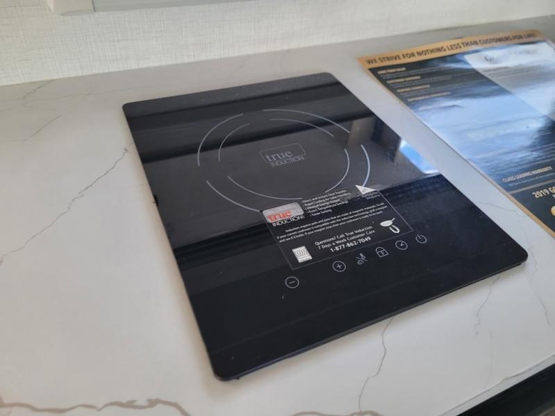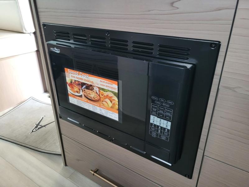 Trips to the lake are made complete in this cozy travel trailer for four. Once you arrive at the campground, you can unload the exterior storage, then start lunch on the induction cooktop and convection microwave. There is a front U-shaped sleeper dinette that will provide dining space and additional sleeping space for guests. This unit includes a private full bath with a shower, toilet, and flip-up bath sink plus some convenient storage for your necessities. You're sure to enjoy sleeping on the rear queen bed that includes wraparound overhead storage for your things!