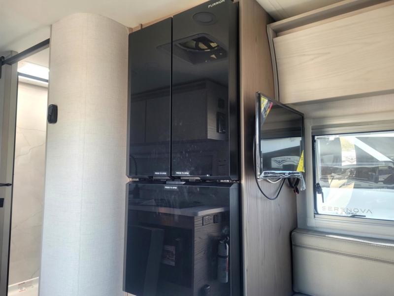 With any Serenova travel trailer by Grand Design, you will enjoy a smooth tow and at-home comforts wherever you decide to roam. There is a MORryde independent suspension plus MORryde shock, Goodyear Endurance tires, and Dexter tow assist with an anti-lock braking system and sway control for optimal handling. To help extend your camping season, there is an enclosed underbelly, a dedicated heat source with Thermafoil, heated dump valves plus thermostatically controlled 12V heating pads. Inside, you'll love the look of the imported Italian cabinetry, and there is a Klipsch whole home Bluetooth speaker so you can listen to your favorite tunes at the campground!