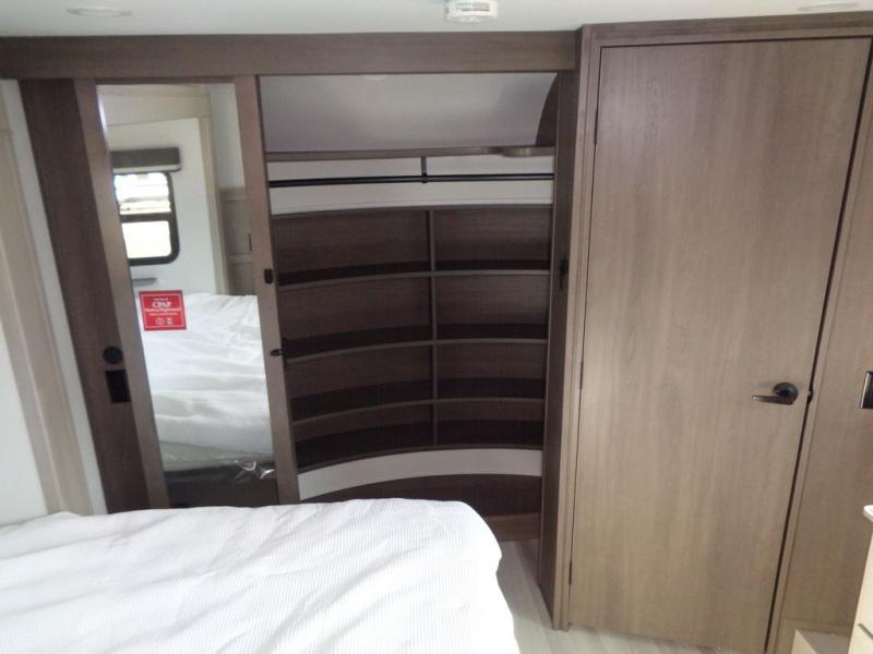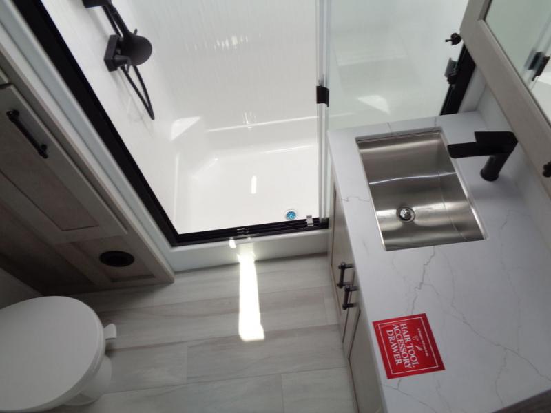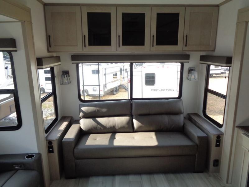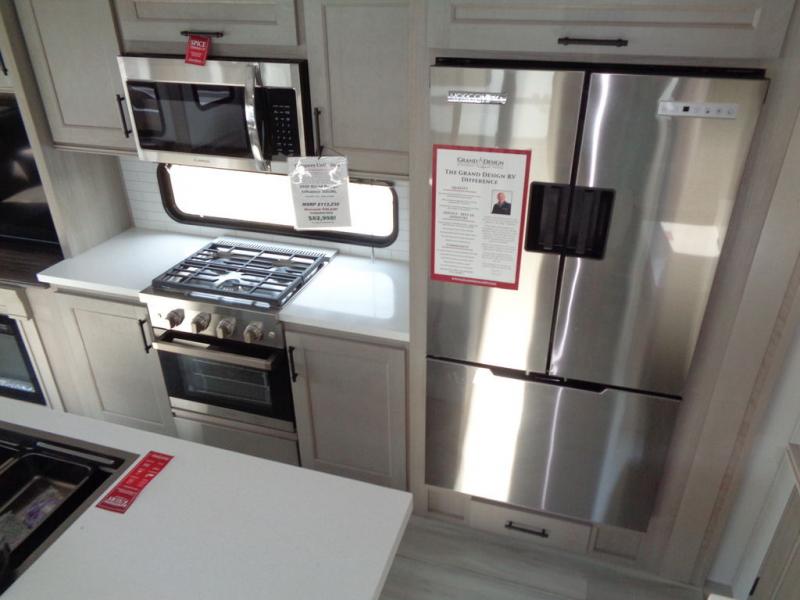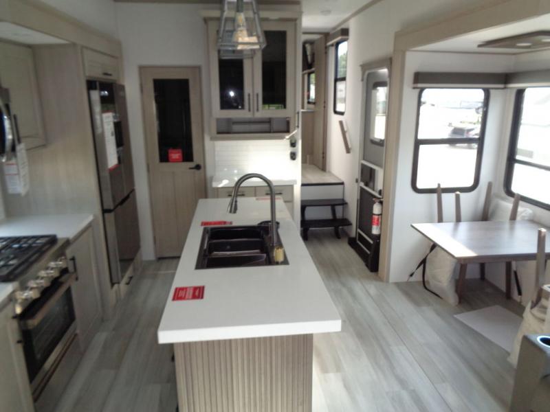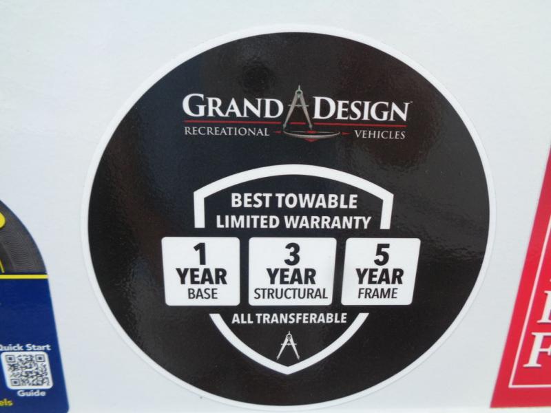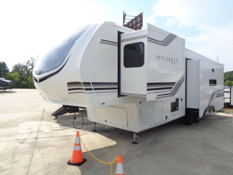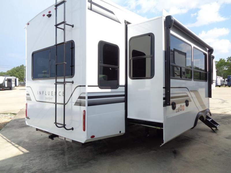 Any Grand Design Influence fifth wheel features five-sided aluminum cage construction with a walk-on roof and a fully enclosed underbelly with heated tanks and storage for all weather camping. For peace of mind, the MORryde CRE3000 Suspension system will provide safe and smooth towing, and the 101" widebody construction offers all the room you need and that is before multiple slides are fully engaged. You will appreciate the Keyed-Alike locks, slam-latch baggage doors with magnetic door catches, exterior security light, and SolidStep entry steps. On the inside, Congoleum flooring, premium roller shades for privacy, a hallway handrail for safety, and nightstands with USB ports to keep all of your electronics fully charged. You will also love the On Demand tankless water heater when showering, plus the added heat and ambiance from an electric fireplace, and so much more!