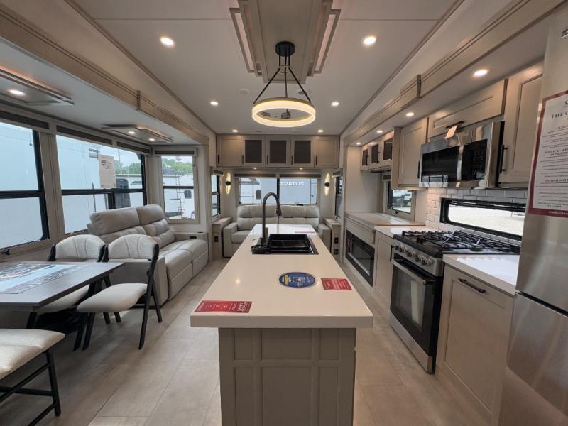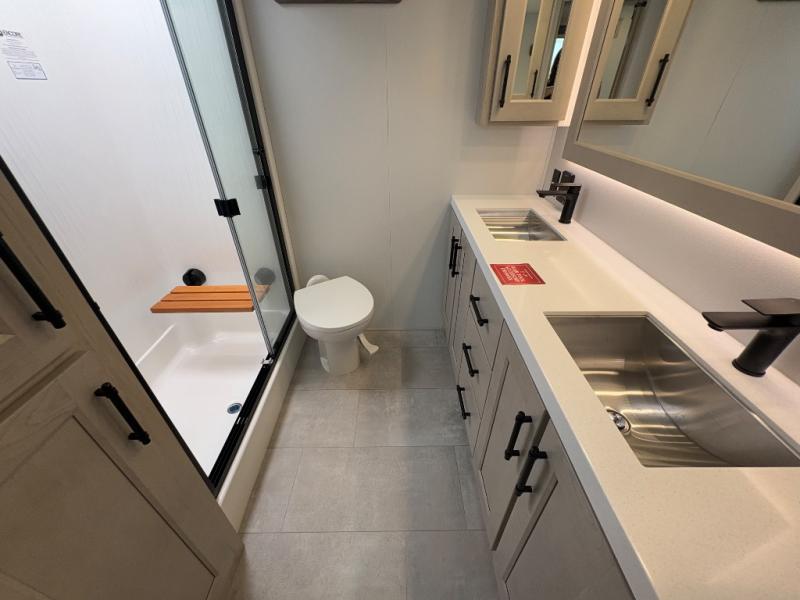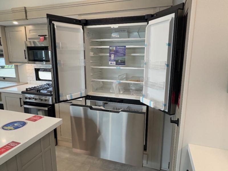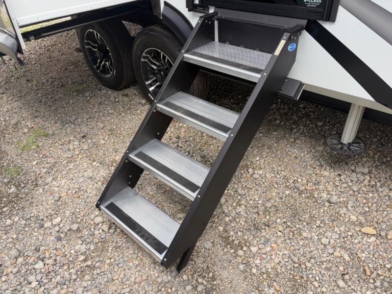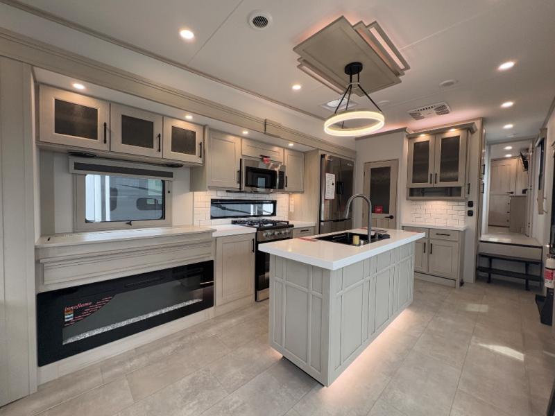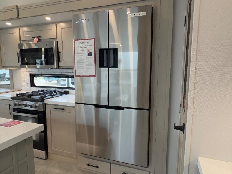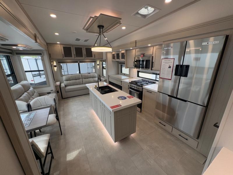 From its three A/C units and king bed suite to its Solar+ package, generator prep, and 8K axles with ABS drum brakes, the Grand Design Solitude 370DV fifth wheel is designed for serious RVers who want residential comfort with rugged durability. Whether camping seasonally or traveling full-time, this luxury fifth wheel delivers.