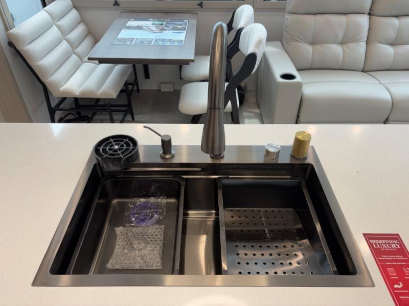 - Kitchen island with Smart sink, hutch storage, and dishwasher prep