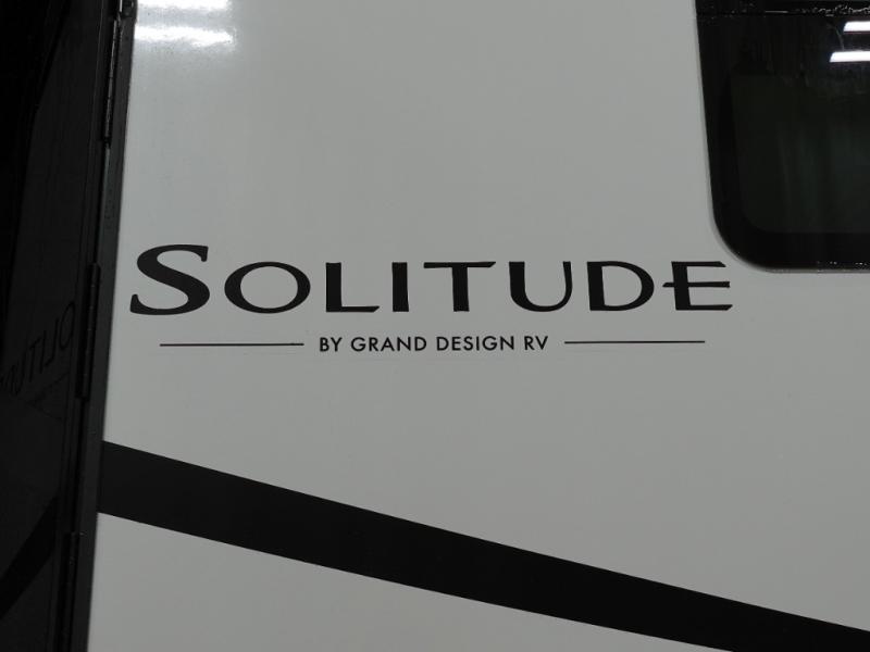 Each Solitude fifth wheel by Grand Design features a 101" wide-body construction, heavy duty 8,000 lb. axles, frameless tinted windows, and high-gloss gel coat sidewalls. You can camp year around thanks to the Weather-Tek Package that includes a 35K BTU high-capacity furnace, an all-in-one enclosed and heated utility center, and a fully enclosed underbelly with heated tanks and storage. Inside, you'll love the premium roller shades, hardwood cabinet doors, solid surface countertops, plus residential finishes throughout to make you truly feel at home. Each model also includes a MORryde CRE3000 suspension system, self adjusting brakes, and a MORryde pin box that will provide smooth towing from home to campground. Affordable luxury is possible with the Solitude fifth wheels; choose yours today!