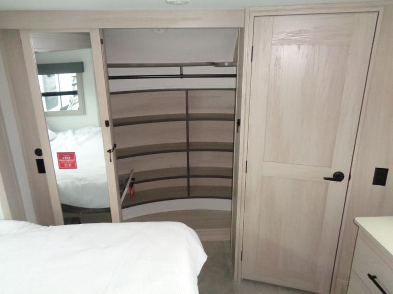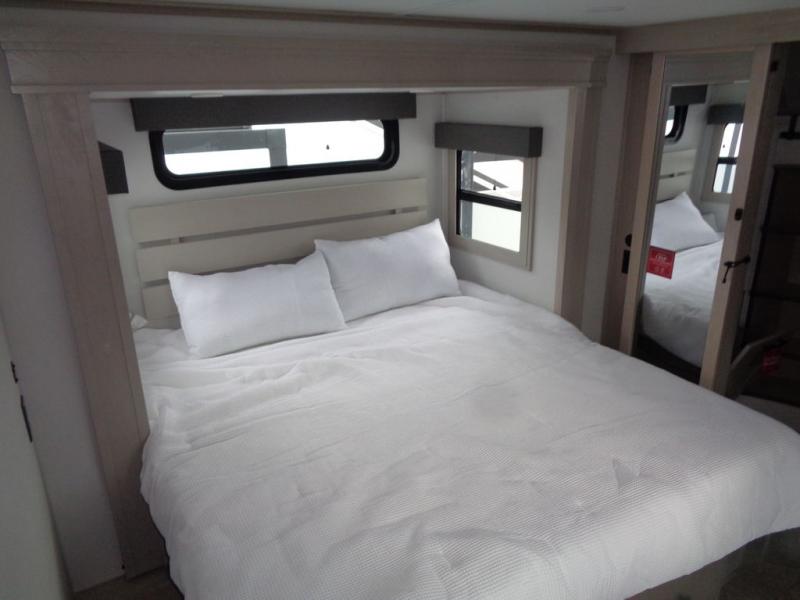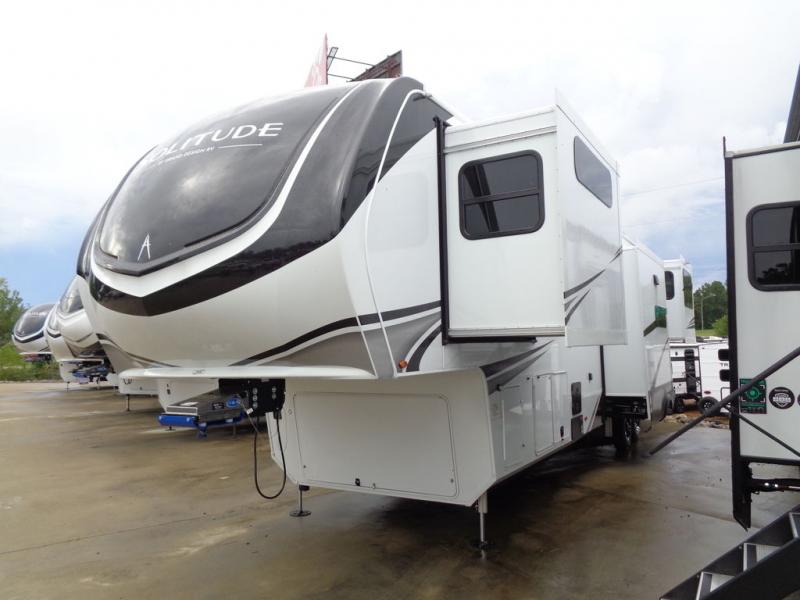Each Solitude fifth wheel by Grand Design features a 101" wide-body construction, heavy duty 8,000 lb. axles, frameless tinted windows, and high-gloss gel coat sidewalls. You can camp year around thanks to the Weather-Tek Package that includes a 35K BTU high-capacity furnace, an all-in-one enclosed and heated utility center, and a fully enclosed underbelly with heated tanks and storage. Inside, you'll love the premium roller shades, hardwood cabinet doors, solid surface countertops, plus residential finishes throughout to make you truly feel at home. Each model also includes a MORryde CRE3000 suspension system, self adjusting brakes, and a MORryde pin box that will provide smooth towing from home to campground. Affordable luxury is possible with the Solitude fifth wheels; choose yours today!