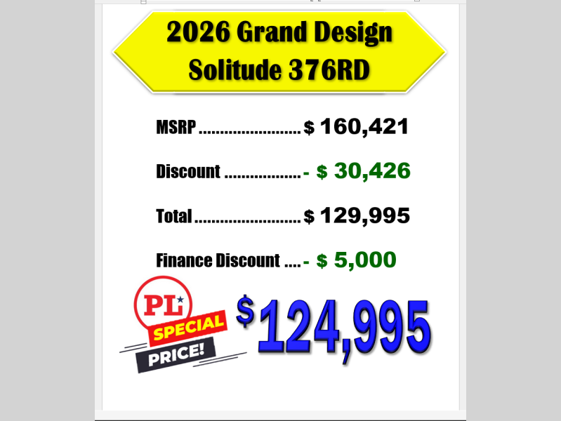 New 2026 Grand Design Solitude 376RD Fifth Wheel