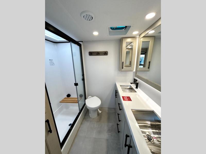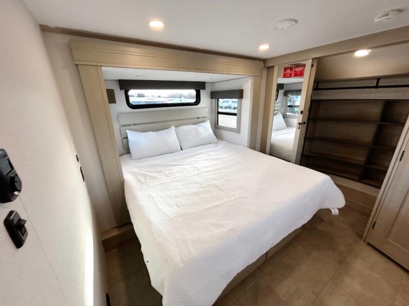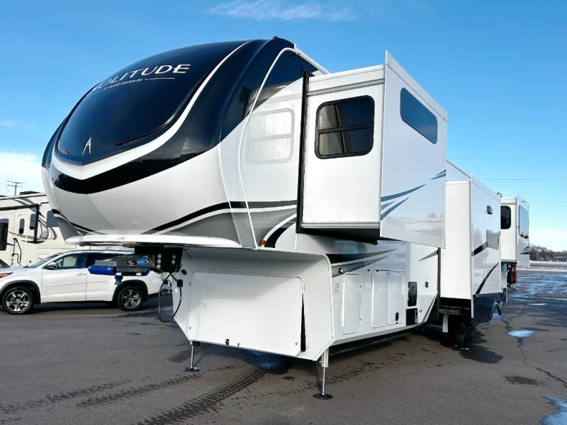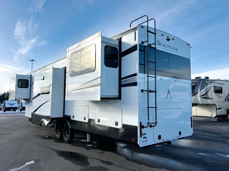 Each Solitude fifth wheel by Grand Design features a 101" wide-body construction, heavy duty 8,000 lb. axles, frameless tinted windows, and high-gloss gel coat sidewalls. You can camp year around thanks to the Weather-Tek Package that includes a 35K BTU high-capacity furnace, an all-in-one enclosed and heated utility center, and a fully enclosed underbelly with heated tanks and storage. Inside, you'll love the premium roller shades, hardwood cabinet doors, solid surface countertops, plus residential finishes throughout to make you truly feel at home. Each model also includes a MORryde CRE3000 suspension system, self adjusting brakes, and a MORryde pin box that will provide smooth towing from home to campground. Affordable luxury is possible with the Solitude fifth wheels; choose yours today!