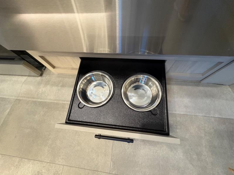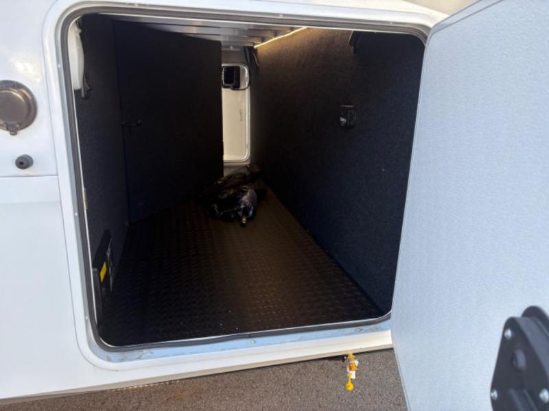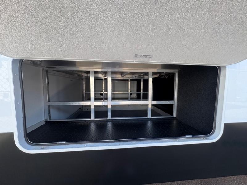 Outside, you will find a large pass through storage compartment and a rear sliding tray perfect for storing oversized gear like grills, tables, and more.
