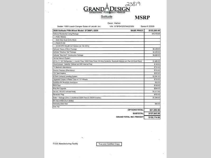 Grand Design Solitude fifth wheel 380FL highlights: