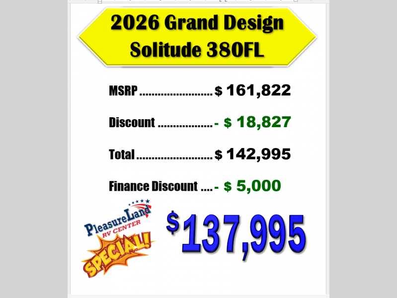New 2026 Grand Design Solitude 380FL Fifth Wheel