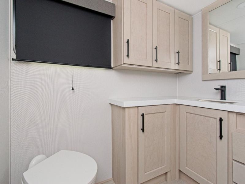 - Frameless tinted windows and high-gloss gel coat sidewalls