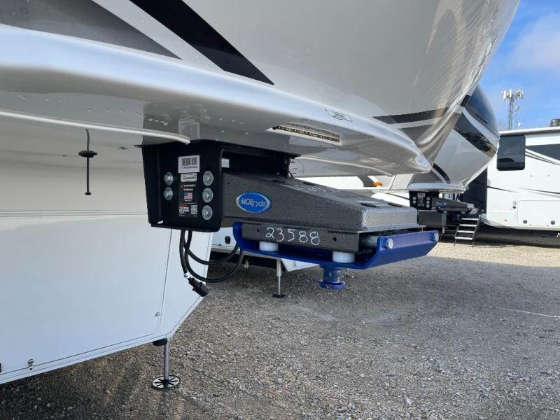 Each Solitude fifth wheel by Grand Design features a 101" wide-body construction, heavy duty 8,000 lb. axles, frameless tinted windows, and high-gloss gel coat sidewalls. You can camp during harsh weather thanks to the Weather-Tek Package that includes a 35K BTU high-capacity furnace, an all-in-one enclosed and heated utility center, and a fully enclosed underbelly with heated tanks and storage. Inside, you'll love the premium roller shades, hardwood cabinet doors, solid surface countertops, plus residential finishes throughout to make you truly feel at home. Each model also includes a MORryde CRE3000 suspension system, and a MORryde pin box that will provide smooth towing from home to campground. Affordable luxury is possible with the Solitude fifth wheels; choose yours today!