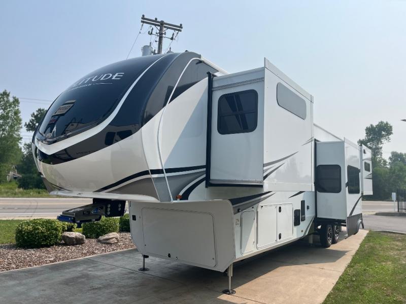 Each Solitude fifth wheel by Grand Design features a 101" wide-body construction, heavy duty 8,000 lb. axles, frameless tinted windows, and high-gloss gel coat sidewalls. You can camp year around thanks to the Weather-Tek Package that includes a 35K BTU high-capacity furnace, an all-in-one enclosed and heated utility center, and a fully enclosed underbelly with heated tanks and storage. Inside, you'll love the premium roller shades, hardwood cabinet doors, solid surface countertops, plus residential finishes throughout to make you truly feel at home. Each model also includes a MORryde CRE3000 suspension system, self adjusting brakes, and a MORryde pin box that will provide smooth towing from home to campground. Affordable luxury is possible with the Solitude fifth wheels; choose yours today!