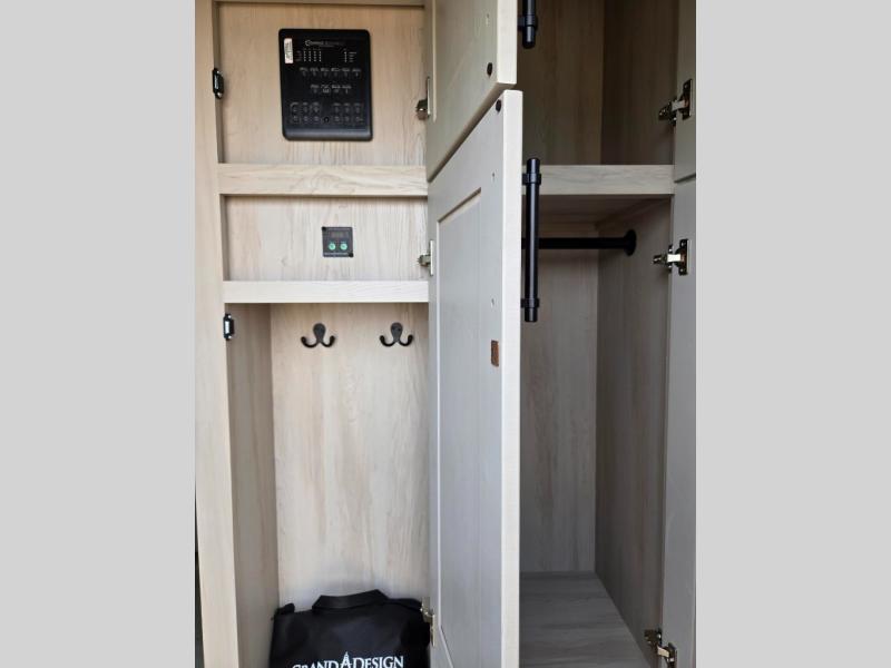 Each Solitude fifth wheel by Grand Design features a 101" wide-body construction, heavy duty 8,000 lb. axles, frameless tinted windows, and high-gloss gel coat sidewalls. You can camp year around thanks to the Weather-Tek Package that includes a 35K BTU high-capacity furnace, an all-in-one enclosed and heated utility center, and a fully enclosed underbelly with heated tanks and storage. Inside, you'll love the premium roller shades, hardwood cabinet doors, solid surface countertops, plus residential finishes throughout to make you truly feel at home. Each model also includes a MORryde CRE3000 suspension system, self adjusting brakes, and a MORryde pin box that will provide smooth towing from home to campground. Affordable luxury is possible with the Solitude fifth wheels; choose yours today!
