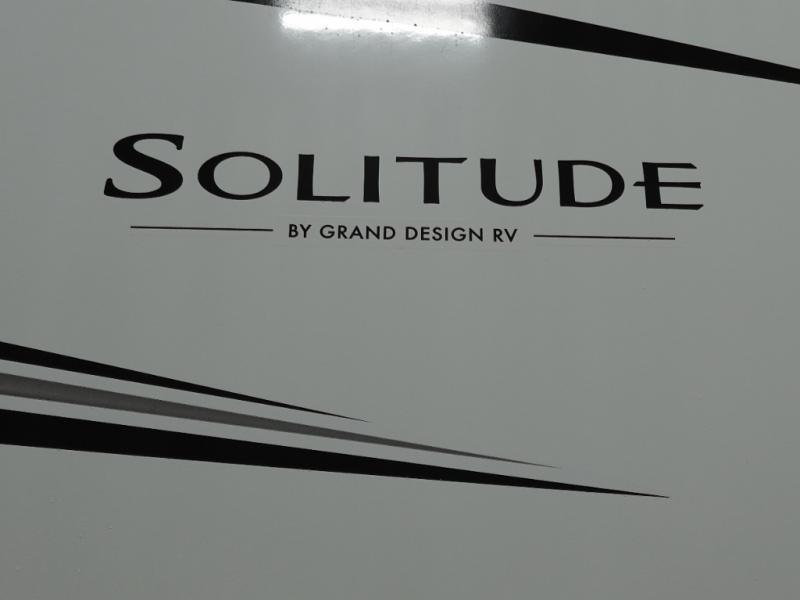 Each Solitude fifth wheel by Grand Design features a 101" wide-body construction, heavy duty 8,000 lb. axles, frameless tinted windows, and high-gloss gel coat sidewalls. You can camp year around thanks to the Weather-Tek Package that includes a 35K BTU high-capacity furnace, an all-in-one enclosed and heated utility center, and a fully enclosed underbelly with heated tanks and storage. Inside, you'll love the premium roller shades, hardwood cabinet doors, solid surface countertops, plus residential finishes throughout to make you truly feel at home. Each model also includes a MORryde CRE3000 suspension system, self adjusting brakes, and a MORryde pin box that will provide smooth towing from home to campground. Affordable luxury is possible with the Solitude fifth wheels; choose yours today!