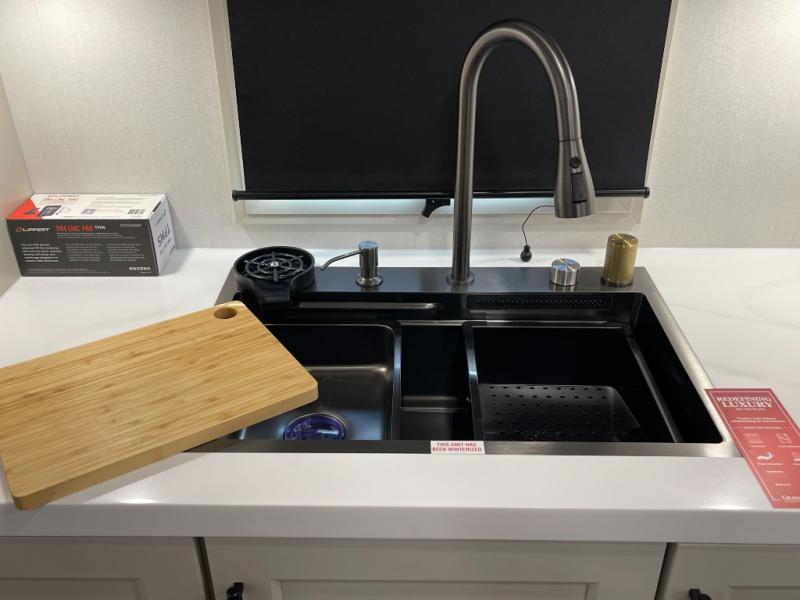 Raised Rear Kitchen, Mid-Living, Luxury Finishes, Dual Bathroom Sinks, King Bed on Slide
