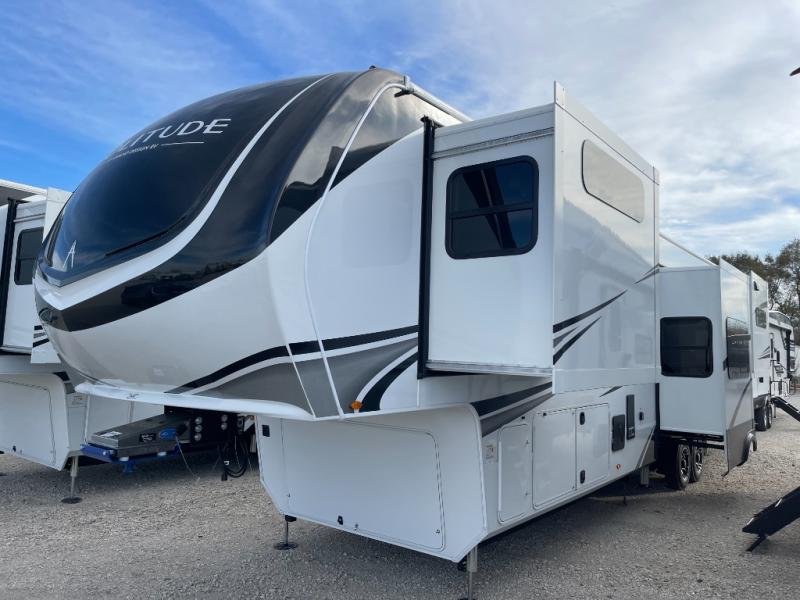 Each Solitude fifth wheel by Grand Design features a 101" wide-body construction, heavy duty 8,000 lb. axles, frameless tinted windows, and high-gloss gel coat sidewalls. You can camp year around thanks to the Weather-Tek Package that includes a 35K BTU high-capacity furnace, an all-in-one enclosed and heated utility center, and a fully enclosed underbelly with heated tanks and storage. Inside, you'll love the premium roller shades, hardwood cabinet doors, solid surface countertops, plus residential finishes throughout to make you truly feel at home. Each model also includes a MORryde CRE3000 suspension system, self adjusting brakes, and a MORryde pin box that will provide smooth towing from home to campground. Affordable luxury is possible with the Solitude fifth wheels; choose yours today!