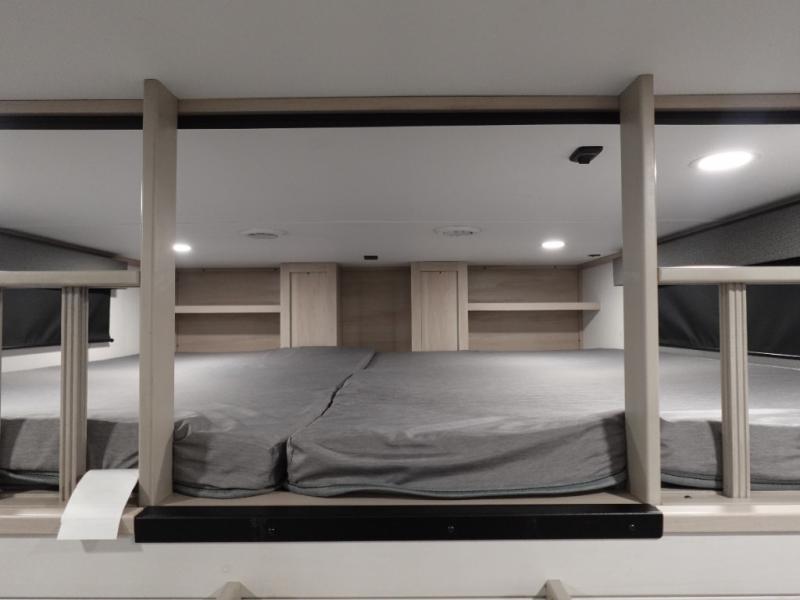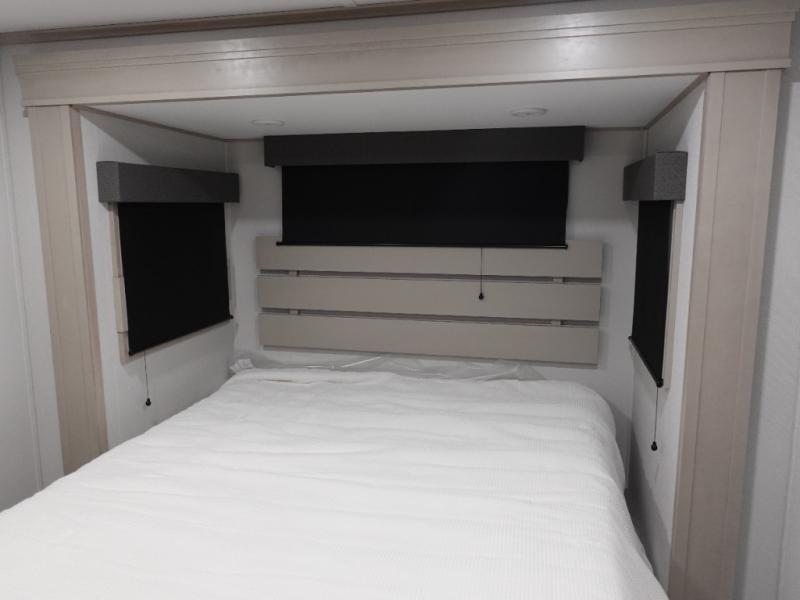 For an affordable luxury extended stay for your family, this Solitude is it! Two private bedrooms plus an overhead Sky Suite loft above the rear bedroom which also has it's own private rear entry/exit door is just the beginning of what is in store for your camping convenience. The upscale kitchen features an island with dishwasher prep, a smart sink, a 12V 20 cu. ft. refrigerator for your perishables, and a built-in oven. There is also a microwave, pantry, and hutch for your dishes, plus a free standing dinette! You can easily take along extra family and friends with the second private bedroom featuring it's own private bath and entry which is great for another couple, and there is even loft space above this rear private bedroom for added storage or sleeping for children. And, you will find ample storage for clothing and belongings throughout with nice size closets, overhead cabinets, plus loads of outside storage.