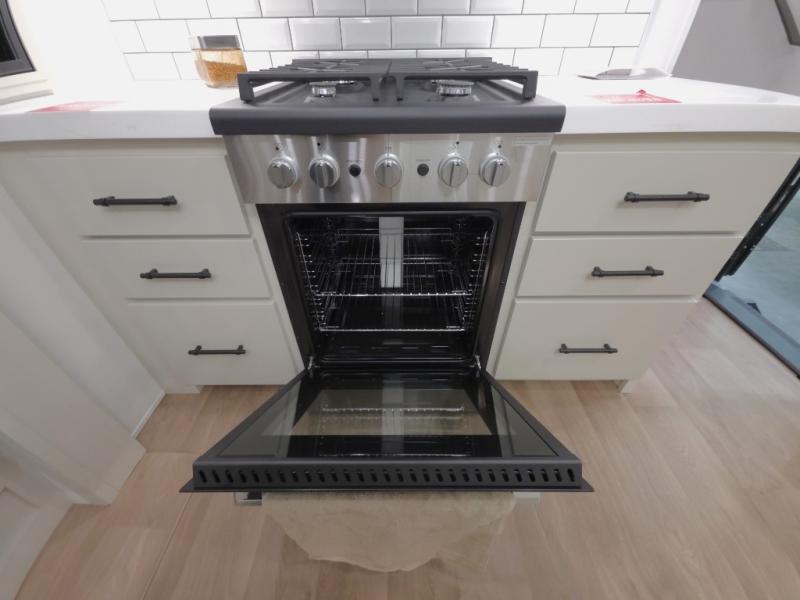 Stay comfortable year-round with a 35K BTU furnace, 30K BTU air conditioning, and a tankless water heater for endless hot showers. With 83 gallons of fresh water capacity and ample gray and waste tanks, off-grid comfort is easy to maintain.