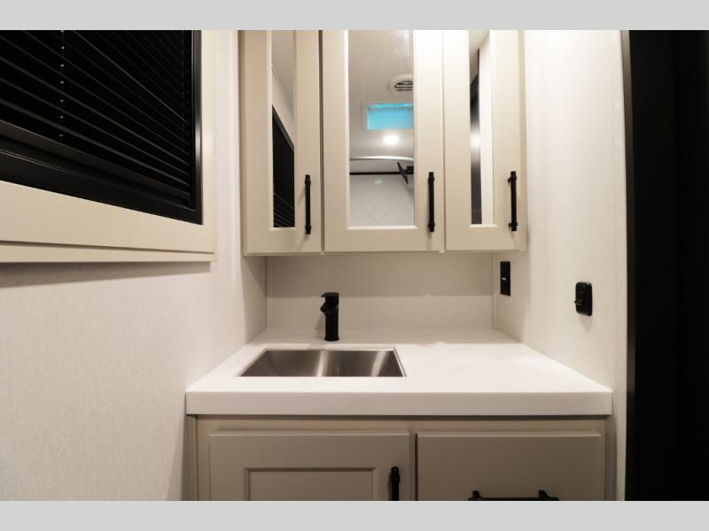 The Solitude line is known as one of the most spacious extended-stay fifth wheels ever built, offering taller ceilings, larger cabinets, and panoramic living spaces that feel like home wherever you travel. The 414LJMJ continues that tradition with residential comfort, innovative outdoor entertainment, and luxury features designed for modern RV living.
