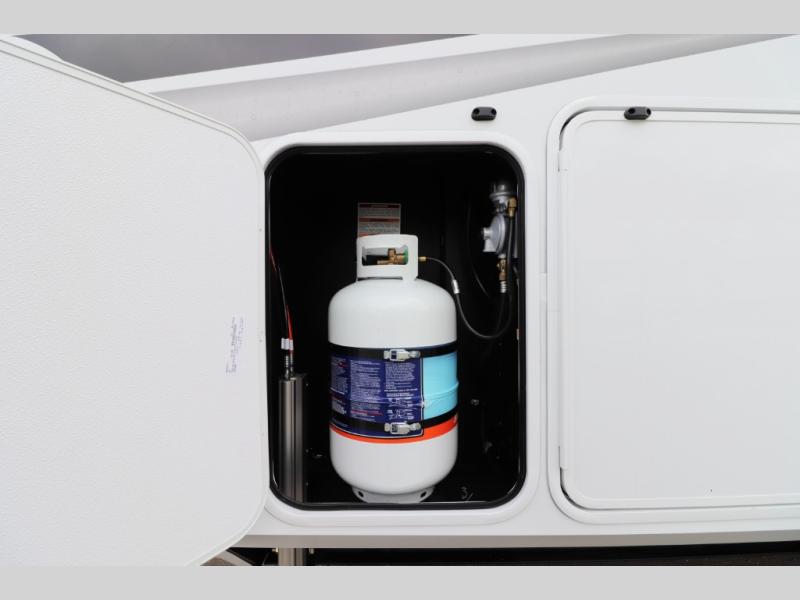 The signature Party Patio transforms your campsite into a private outdoor retreat. Enjoy movie nights, cookouts, or relaxing evenings with the built-in exterior TV, refrigerator, sink, and cooking station—making this one of the most unique and entertaining fifth wheels available today.