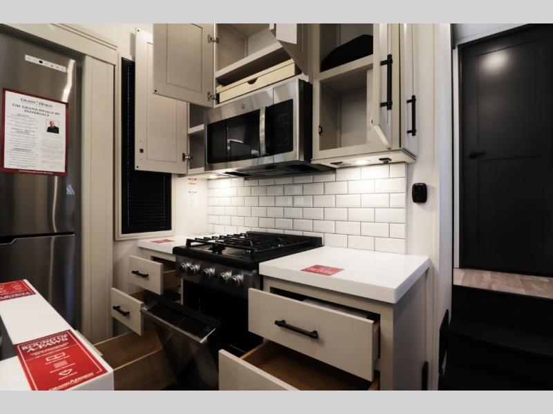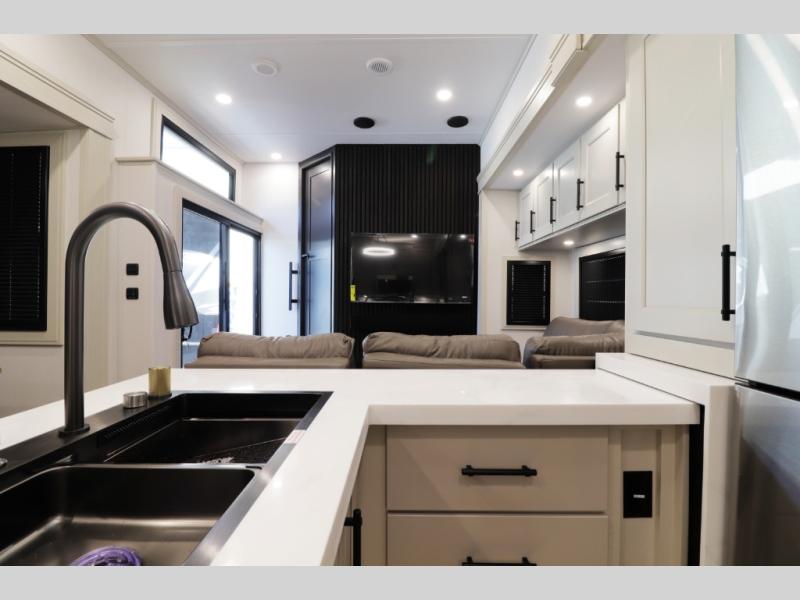 Step inside and experience residential-style luxury designed for extended stays. The 414LJMJ features spacious living areas, tall ceilings, premium cabinetry, and comfortable sleeping space for up to six. Whether you're working remotely, traveling cross-country, or enjoying long-term camping, this Solitude delivers true home comfort with residential appliances, premium furnishings, and modern design.