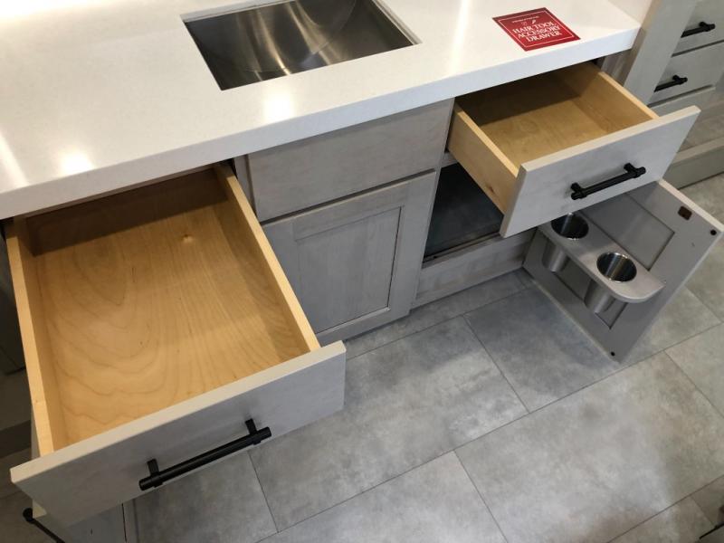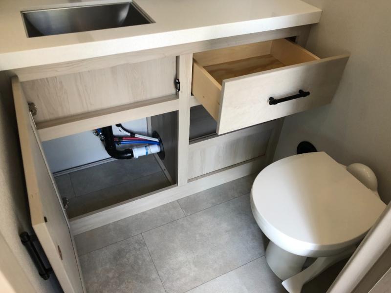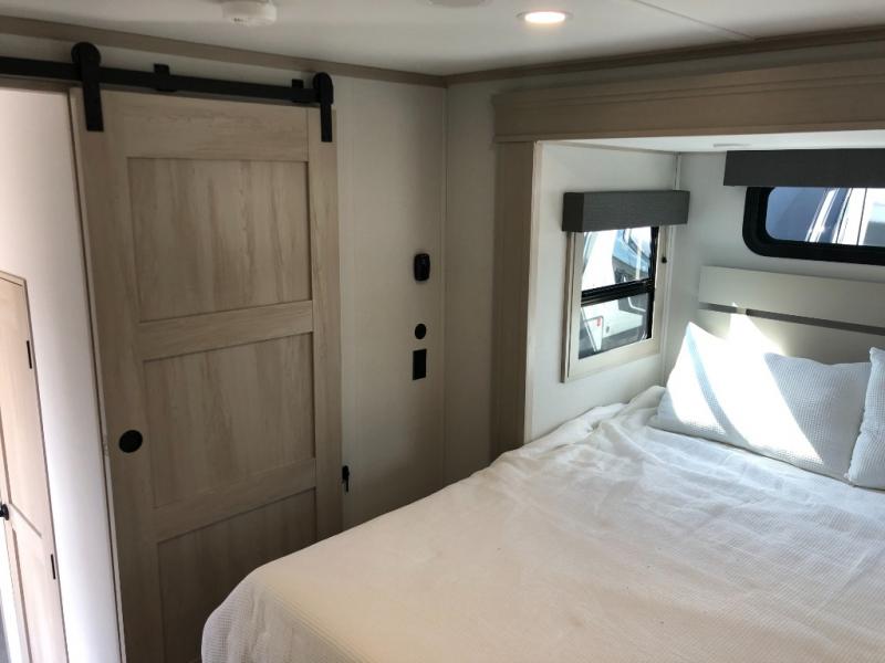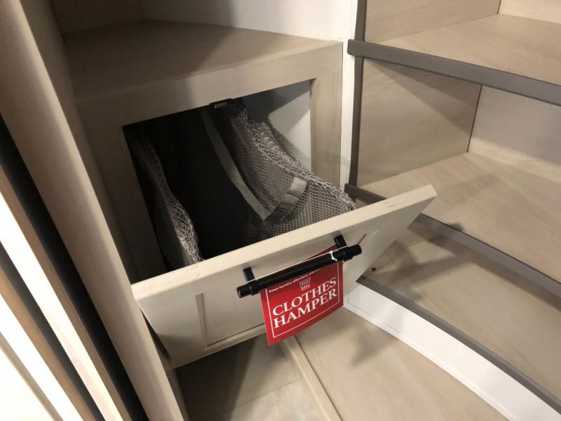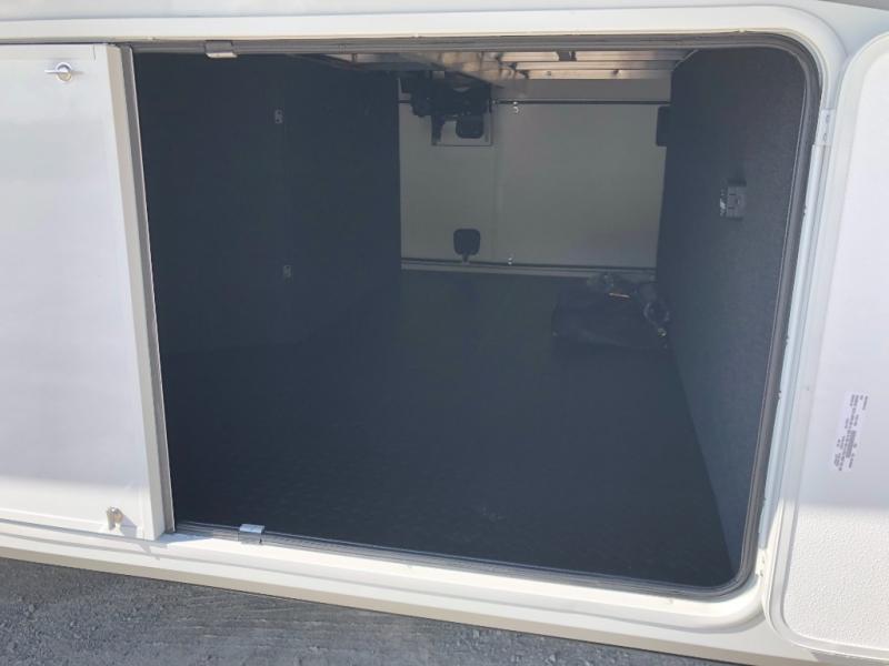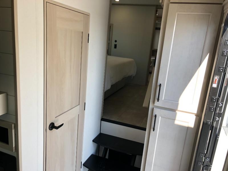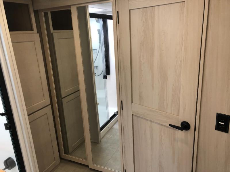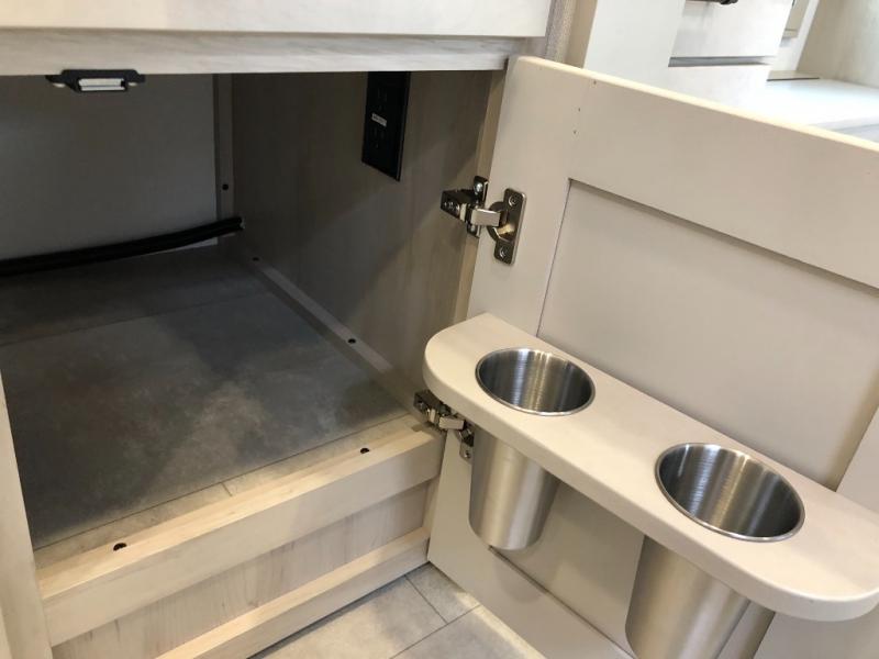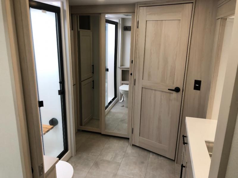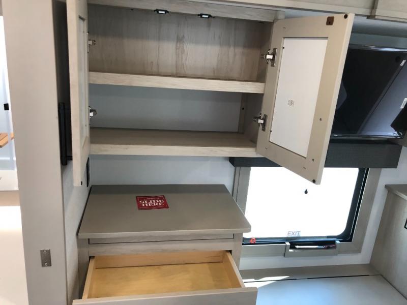 Comfort will come easy in this four slide out fifth wheel! You will feel right at home with a master bedroom that includes a queen bed slide out with a king bed option, dual dressers with a seat in between, plus a large front bath with tons of space. The convenient half bath is right as you enter the unit for convenience. Your crew can get cozy on the dual tri-fold sofas within dual opposing slides, or on the theater seating across from the LED TV and fireplace. One feature you will love about this fifth wheel is the rear kitchen with wrap-around counter space, a built-in oven, plus a 20 cu. ft. 12V refrigerator and a large pantry to keep food fresh.