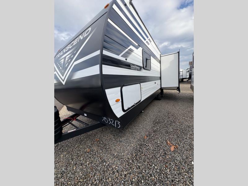 With any Transcend travel trailer by Grand Design, you will enjoy upscale appointments and convenient amenities to make each camping experience one to remember! The Quad Seal technology, residential insulated walls, plus heated and enclosed underbelly with suspended tanks make these units solid and durable. There is a black automotive glass door outside, along with a Safe-T-Rail assist on the main entry door, backup camera prep, and a universal docking station. JBL interior and exterior speakers plus a JBL head unit will let you listen to your favorite tunes as you visit under the power awning with LED strip lights. Inside, you'll enjoy multiple outlets to keep your gadgets charged, thermoformed and seamless countertops, and a 6' 6" interior height so you won't feel closed in. The Solar Prep Package will allow you to enjoy off-grid capabilities with a 200W solar panel, which is wired for up to 600W, a 30 AMP Bluetooth solar controller, a 2000W inverter prep, and more!