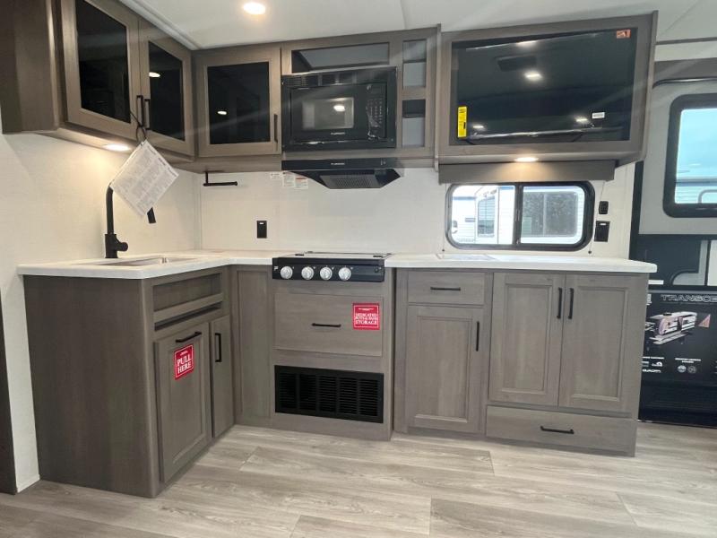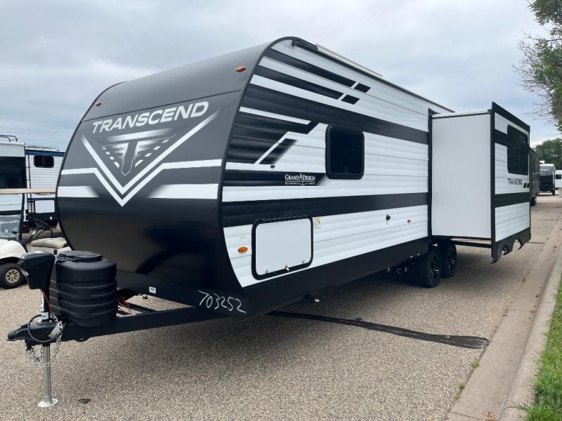 With any Transcend travel trailer by Grand Design, you will enjoy upscale appointments and convenient amenities to make each camping experience one to remember! The Quad Seal technology, residential insulated walls, plus heated and enclosed underbelly with suspended tanks make these units solid and durable. There is a black automotive glass door outside, along with a Safe-T-Rail assist on the main entry door, backup camera prep, and a universal docking station. JBL interior and exterior speakers plus a JBL head unit will let you listen to your favorite tunes as you visit under the power awning with LED strip lights. Inside, you'll enjoy multiple outlets to keep your gadgets charged, thermoformed and seamless countertops, and a 6' 6" interior height so you won't feel closed in. The Solar Prep Package will allow you to enjoy off-grid capabilities with a 200W solar panel, which is wired for up to 600W, a 30 AMP Bluetooth solar controller, a 2000W inverter prep, and more!