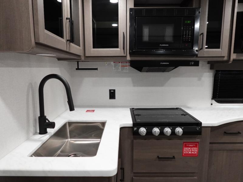 With any Transcend travel trailer by Grand Design, you will enjoy upscale appointments and convenient amenities to make each camping experience one to remember! The Quad Seal technology, residential insulated walls, plus heated and enclosed underbelly with suspended tanks make these units solid and durable. There is a black automotive glass door outside, along with a Safe-T-Rail assist on the main entry door, backup camera prep, and a universal docking station. JBL interior and exterior speakers plus a JBL head unit will let you listen to your favorite tunes as you visit under the power awning with LED strip lights. Inside, you'll enjoy multiple outlets to keep your gadgets charged, thermoformed and seamless countertops, and a 6' 6" interior height so you won't feel closed in. The Solar Prep Package will allow you to enjoy off-grid capabilities with a 200W solar panel, which is wired for up to 600W, a 30 AMP Bluetooth solar controller, a 2000W inverter prep, and more!