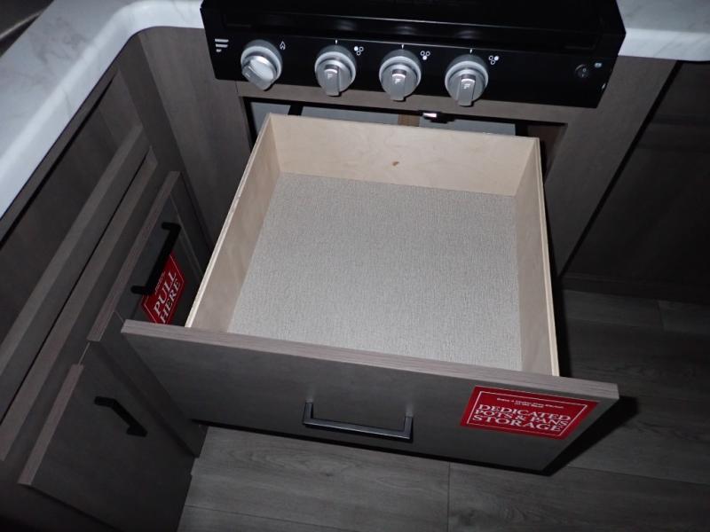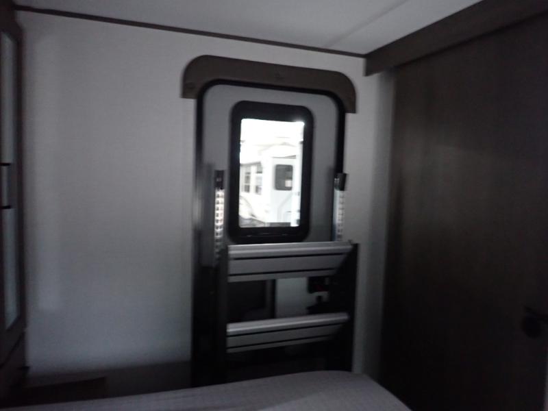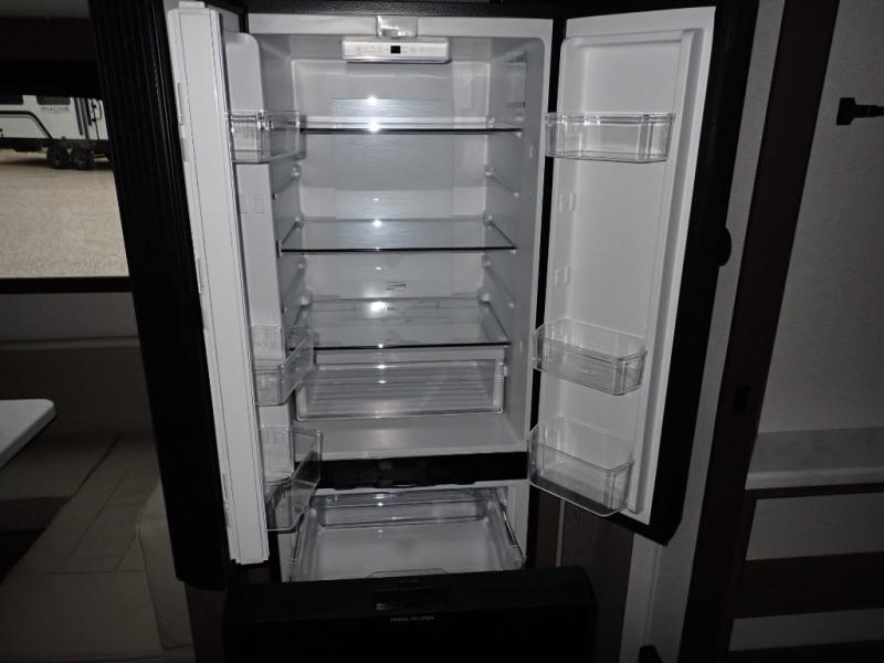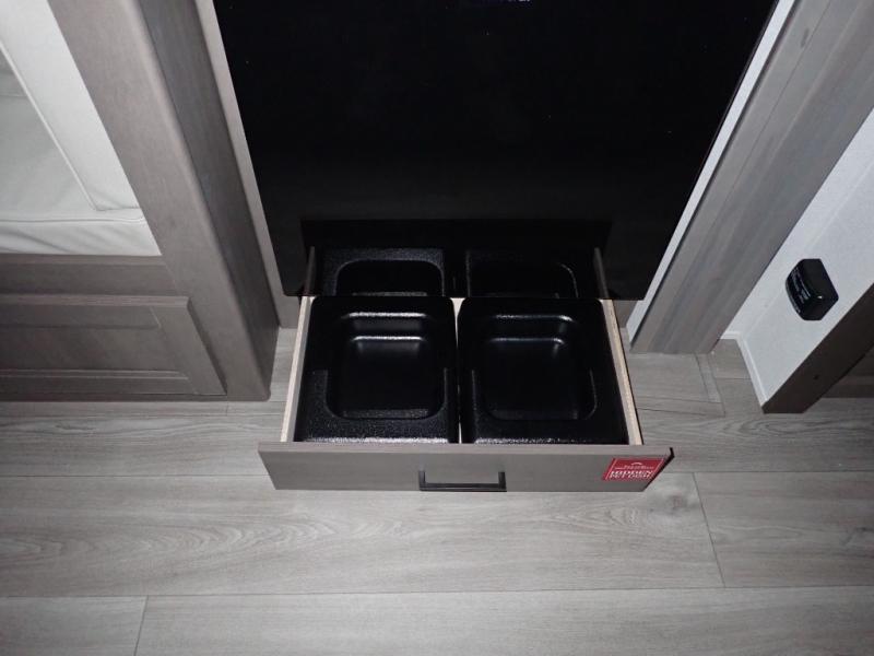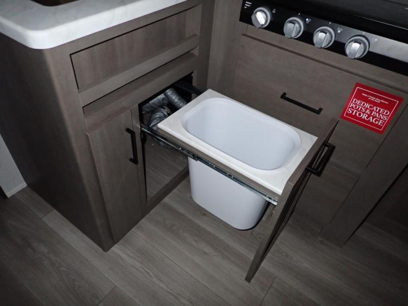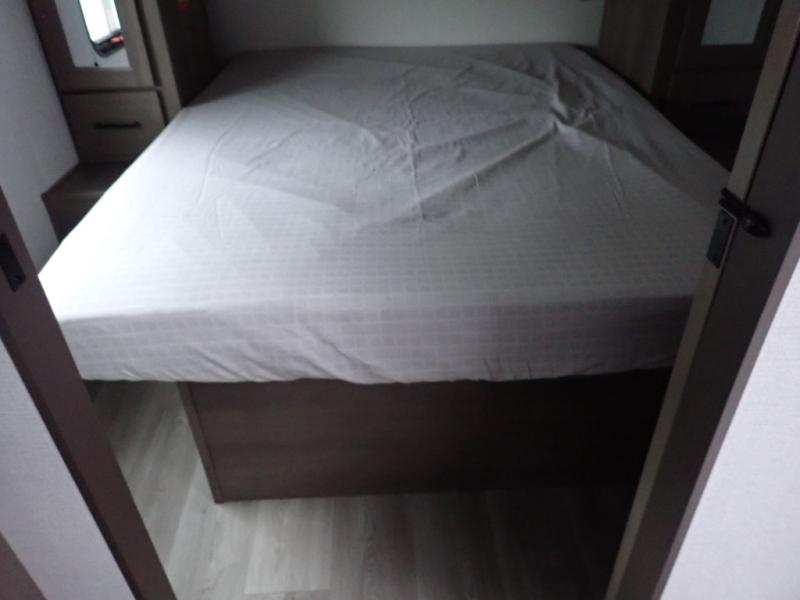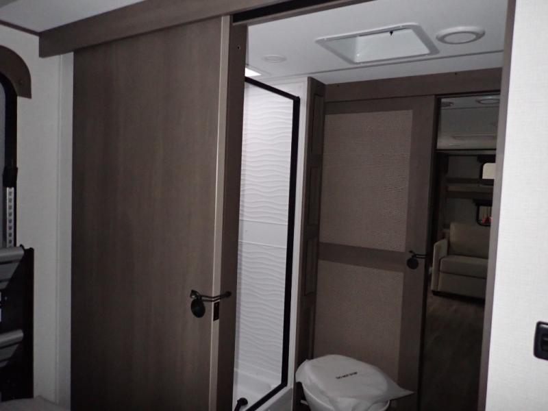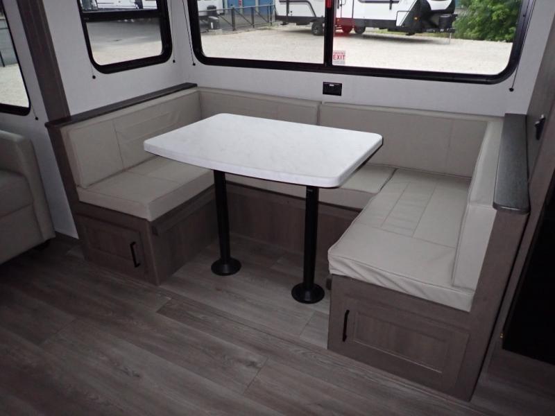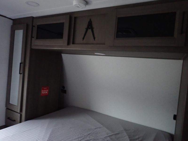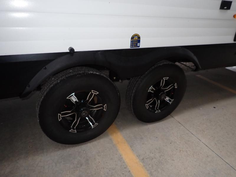 Your crew of eight will love camping in this spacious travel trailer! There are double-size bunks in the back with step storage and an added wardrobe for your guests' things plus exterior storage for camp gear galore. A walk-thru bath will create a front master bedroom you are sure to love, especially with its queen bed, wardrobe storage, and private exterior entry door! The main living area will be a favorite place to hang out with its U-shaped dinette, theater seating and 32" TV. If the weather is nice, you may just find yourselves outdoors since there is a rear exterior griddle and 1.7 cu. ft. refrigerator!