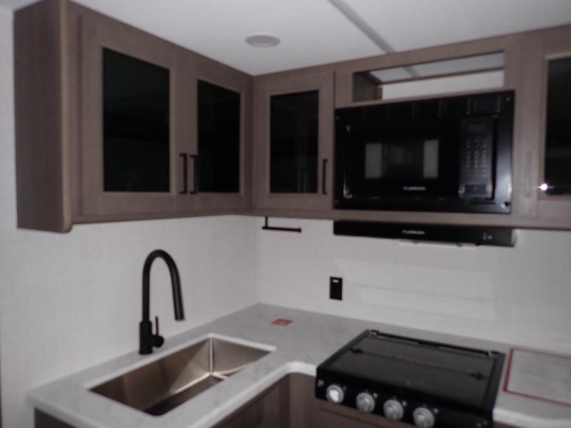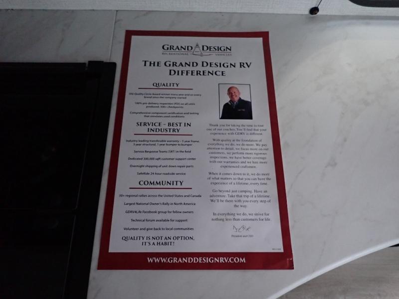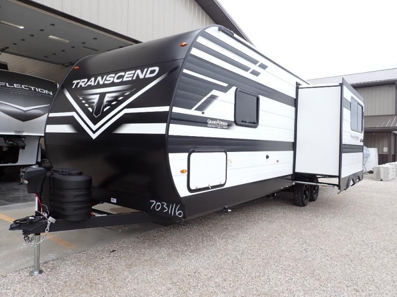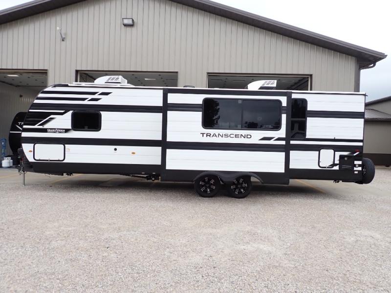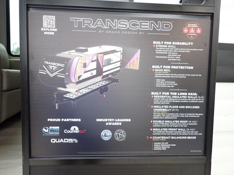 With any Transcend travel trailer by Grand Design, you will enjoy upscale appointments and convenient amenities to make each camping experience one to remember! The Quad Seal technology, residential insulated walls, plus heated and enclosed underbelly with suspended tanks make these units solid and durable. There is a black automotive glass door outside, along with a Safe-T-Rail assist on the main entry door, backup camera prep, and a universal docking station. JBL interior and exterior speakers plus a JBL head unit will let you listen to your favorite tunes as you visit under the power awning with LED strip lights. Inside, you'll enjoy multiple outlets to keep your gadgets charged, thermoformed and seamless countertops, and a 6' 6" interior height so you won't feel closed in. The Solar Prep Package will allow you to enjoy off-grid capabilities with a 200W solar panel, which is wired for up to 600W, a 30 AMP Bluetooth solar controller, a 2000W inverter prep, and more!