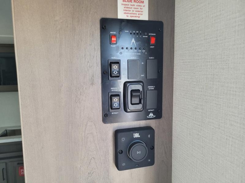 With any Transcend travel trailer by Grand Design, you will enjoy upscale appointments and convenient amenities to make each camping experience one to remember! The Quad Seal technology, residential insulated walls, plus heated and enclosed underbelly with suspended tanks make these units solid and durable. There is a black automotive glass door outside, along with a Safe-T-Rail assist on the main entry door, backup camera prep, and a universal docking station. JBL interior and exterior speakers plus a JBL head unit will let you listen to your favorite tunes as you visit under the power awning with LED strip lights. Inside, you'll enjoy multiple outlets to keep your gadgets charged, thermoformed and seamless countertops, and a 6' 6" interior height so you won't feel closed in. The Solar Prep Package will allow you to enjoy off-grid capabilities with a 200W solar panel, which is wired for up to 600W, a 30 AMP Bluetooth solar controller, a 2000W inverter prep, and more!