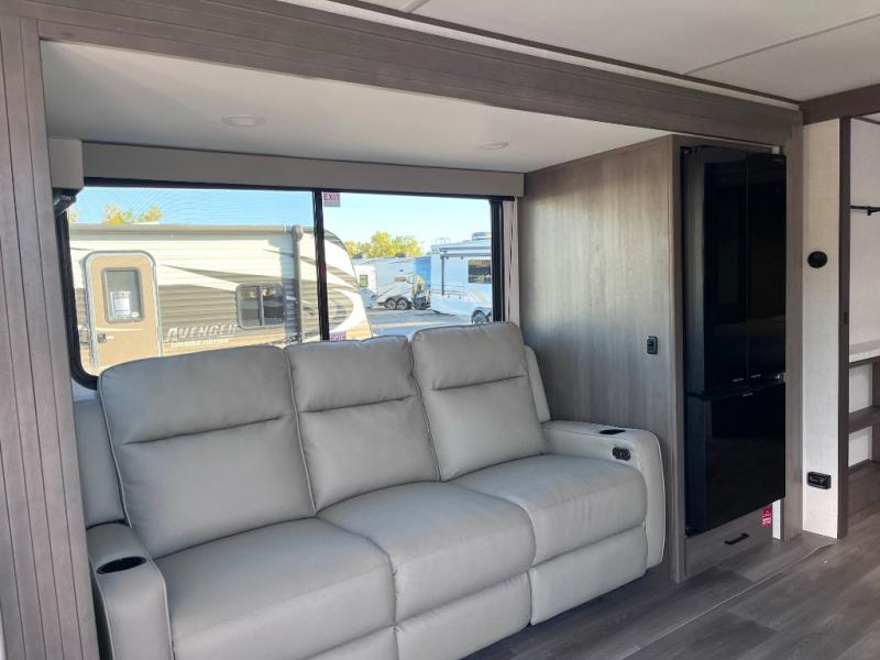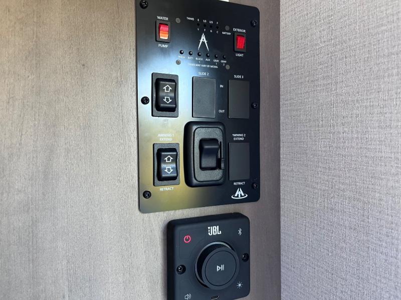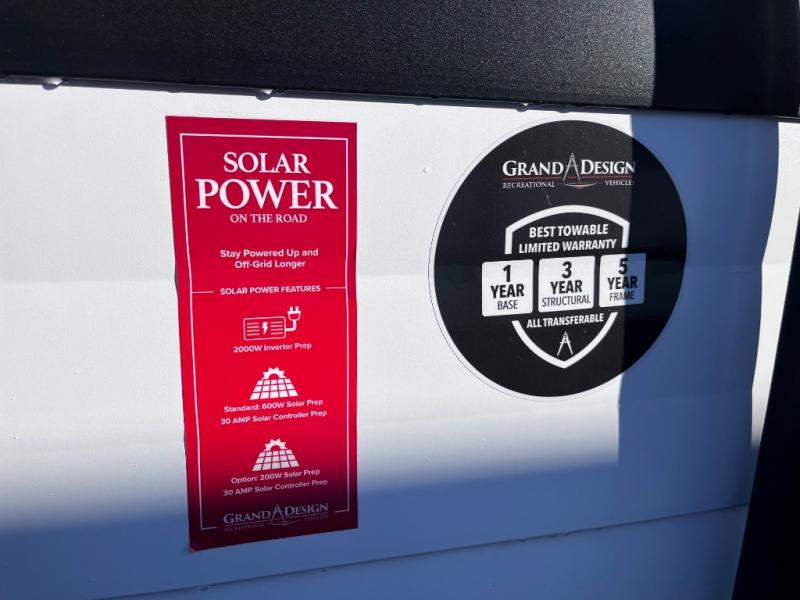 With any Transcend travel trailer by Grand Design, you will enjoy upscale appointments and convenient amenities to make each camping experience one to remember! The Quad Seal technology, residential insulated walls, plus heated and enclosed underbelly with suspended tanks make these units solid and durable. There is a black automotive glass door outside, along with a Safe-T-Rail assist on the main entry door, backup camera prep, and a universal docking station. JBL interior and exterior speakers plus a JBL head unit will let you listen to your favorite tunes as you visit under the power awning with LED strip lights. Inside, you'll enjoy multiple outlets to keep your gadgets charged, thermoformed and seamless countertops, and a 6' 6" interior height so you won't feel closed in. The Solar Prep Package will allow you to enjoy off-grid capabilities with a 200W solar panel, which is wired for up to 600W, a 30 AMP Bluetooth solar controller, a 2000W inverter prep, and more!