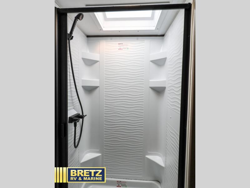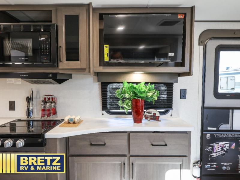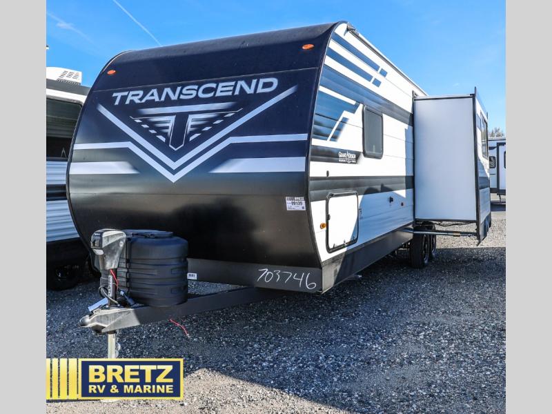 With any Transcend travel trailer by Grand Design, you will enjoy upscale appointments and convenient amenities to make each camping experience one to remember! The Quad Seal technology, residential insulated walls, plus heated and enclosed underbelly with suspended tanks make these units solid and durable. There is a black automotive glass door outside, along with a Safe-T-Rail assist on the main entry door, backup camera prep, and a universal docking station. JBL interior and exterior speakers plus a JBL head unit will let you listen to your favorite tunes as you visit under the power awning with LED strip lights. Inside, you'll enjoy multiple outlets to keep your gadgets charged, thermoformed and seamless countertops, and a 6' 6" interior height so you won't feel closed in. The Solar Prep Package will allow you to enjoy off-grid capabilities with a 200W solar panel, which is wired for up to 600W, a 30 AMP Bluetooth solar controller, a 2000W inverter prep, and more!