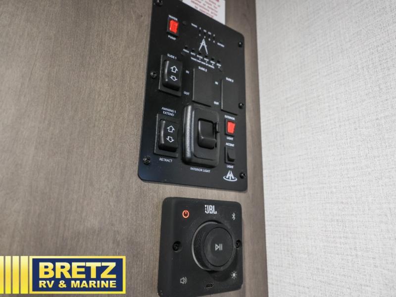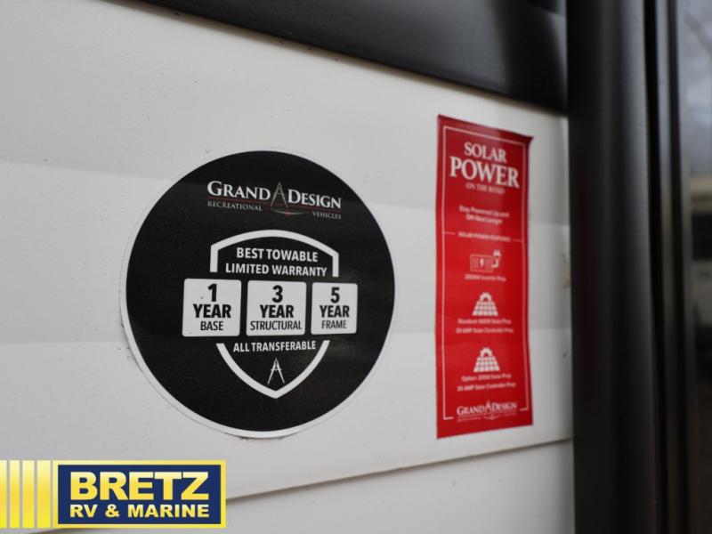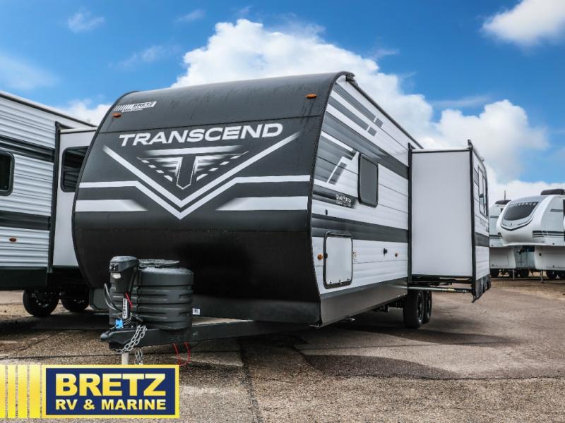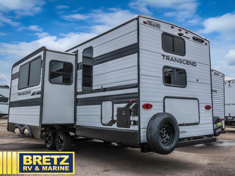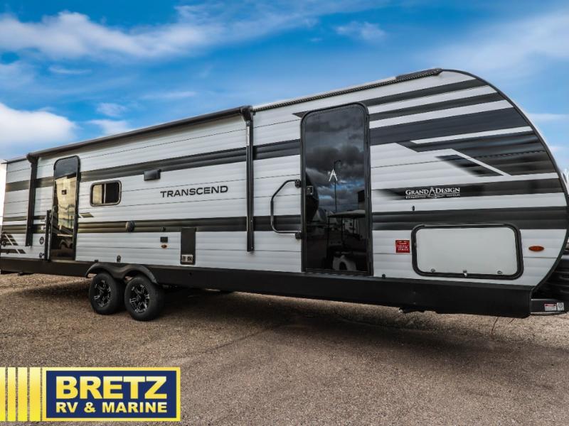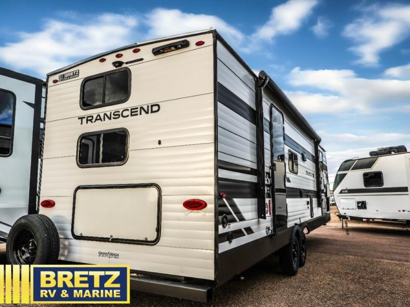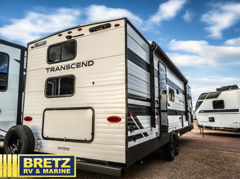 With any Transcend travel trailer by Grand Design, you will enjoy upscale appointments and convenient amenities to make each camping experience one to remember! The Quad Seal technology, residential insulated walls, plus heated and enclosed underbelly with suspended tanks make these units solid and durable. There is a black automotive glass door outside, along with a Safe-T-Rail assist on the main entry door, backup camera prep, and a universal docking station. JBL interior and exterior speakers plus a JBL head unit will let you listen to your favorite tunes as you visit under the power awning with LED strip lights. Inside, you'll enjoy multiple outlets to keep your gadgets charged, thermoformed and seamless countertops, and a 6' 6" interior height so you won't feel closed in. The Solar Prep Package will allow you to enjoy off-grid capabilities with a 200W solar panel, which is wired for up to 600W, a 30 AMP Bluetooth solar controller, a 2000W inverter prep, and more!