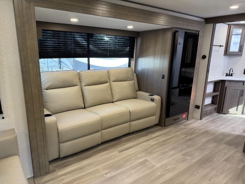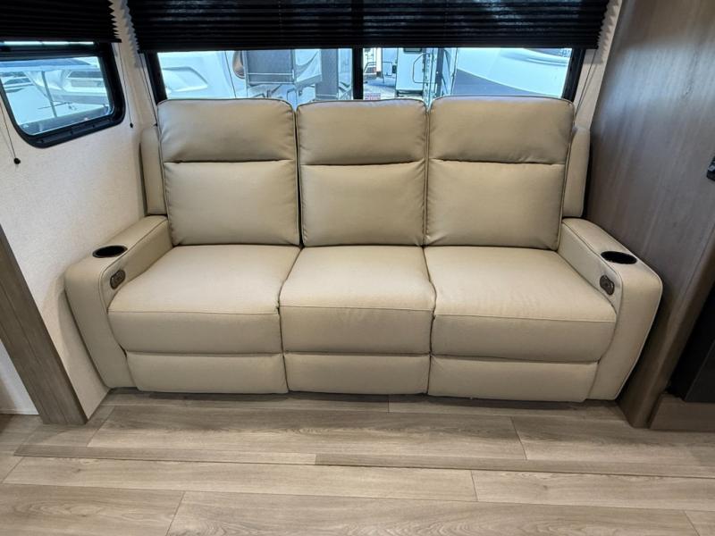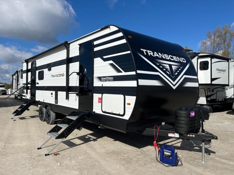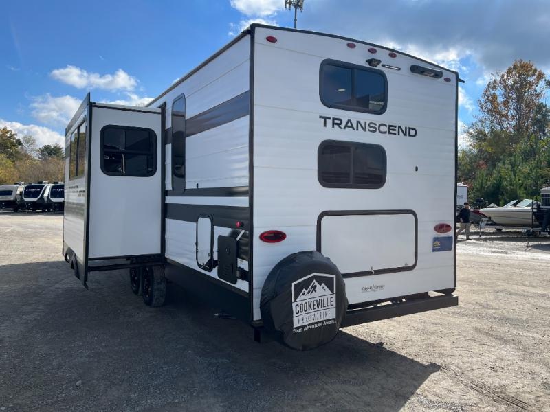 With any Transcend travel trailer by Grand Design, you will enjoy upscale appointments and convenient amenities to make each camping experience one to remember! The Quad Seal technology, residential insulated walls, plus heated and enclosed underbelly with suspended tanks make these units solid and durable. There is a black automotive glass door outside, along with a Safe-T-Rail assist on the main entry door, backup camera prep, and a universal docking station. JBL interior and exterior speakers plus a JBL head unit will let you listen to your favorite tunes as you visit under the power awning with LED strip lights. Inside, you'll enjoy multiple outlets to keep your gadgets charged, thermoformed and seamless countertops, and a 6' 6" interior height so you won't feel closed in. The Solar Prep Package will allow you to enjoy off-grid capabilities with a 200W solar panel, which is wired for up to 600W, a 30 AMP Bluetooth solar controller, a 2000W inverter prep, and more!