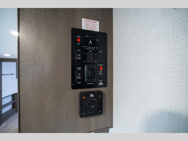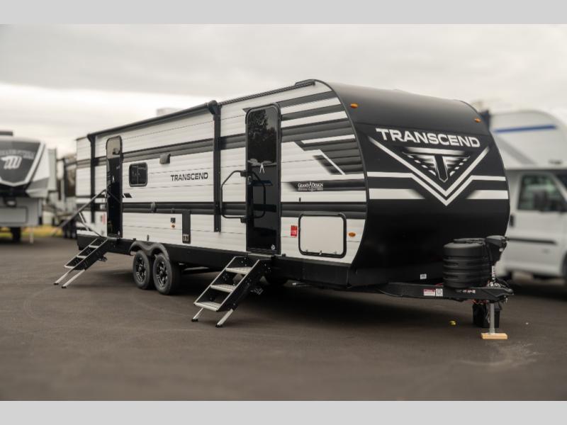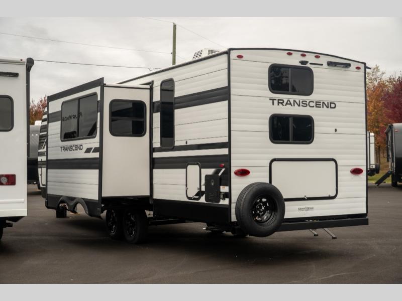 With any Transcend travel trailer by Grand Design, you will enjoy upscale appointments and convenient amenities to make each camping experience one to remember! The Quad Seal technology, residential insulated walls, plus heated and enclosed underbelly with suspended tanks make these units solid and durable. There is a black automotive glass door outside, along with a Safe-T-Rail assist on the main entry door, backup camera prep, and a universal docking station. JBL interior and exterior speakers plus a JBL head unit will let you listen to your favorite tunes as you visit under the power awning with LED strip lights. Inside, you'll enjoy multiple outlets to keep your gadgets charged, thermoformed and seamless countertops, and a 6' 6" interior height so you won't feel closed in. The Solar Prep Package will allow you to enjoy off-grid capabilities with a 200W solar panel, which is wired for up to 600W, a 30 AMP Bluetooth solar controller, a 2000W inverter prep, and more!