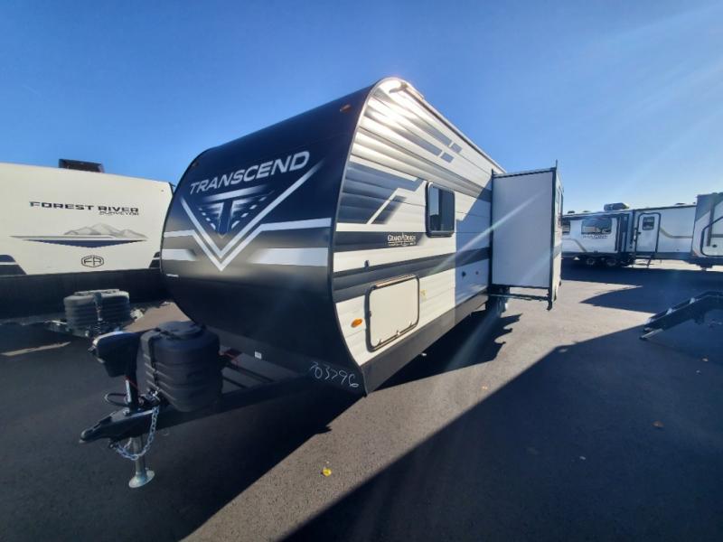 With any Transcend travel trailer by Grand Design, you will enjoy upscale appointments and convenient amenities to make each camping experience one to remember! The Quad Seal technology, residential insulated walls, plus heated and enclosed underbelly with suspended tanks make these units solid and durable. There is a black automotive glass door outside, along with a Safe-T-Rail assist on the main entry door, backup camera prep, and a universal docking station. JBL interior and exterior speakers plus a JBL head unit will let you listen to your favorite tunes as you visit under the power awning with LED strip lights. Inside, you'll enjoy multiple outlets to keep your gadgets charged, thermoformed and seamless countertops, and a 6' 6" interior height so you won't feel closed in. The Solar Prep Package will allow you to enjoy off-grid capabilities with a 200W solar panel, which is wired for up to 600W, a 30 AMP Bluetooth solar controller, a 2000W inverter prep, and more!