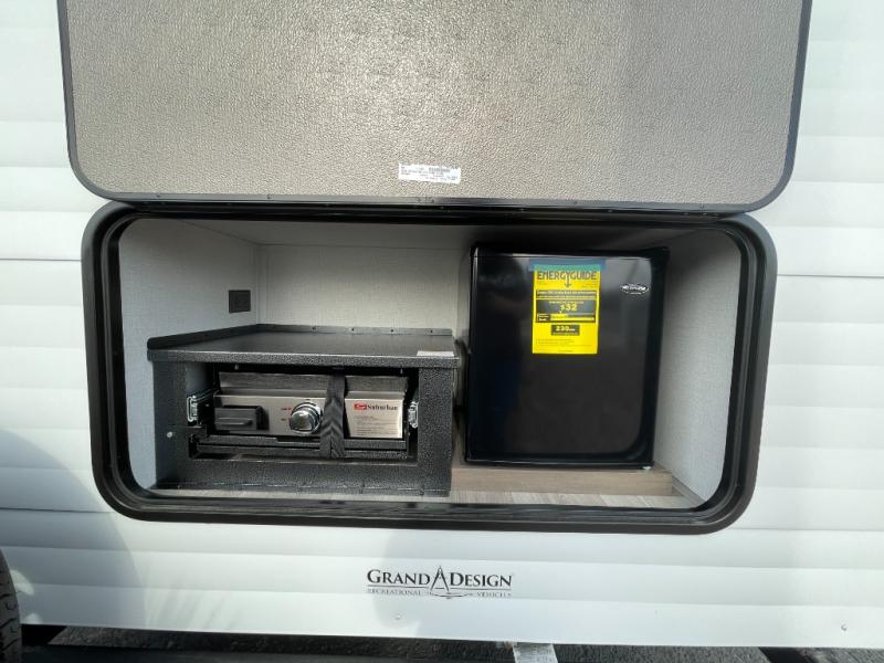 With any Transcend travel trailer by Grand Design, you will enjoy upscale appointments and convenient amenities to make each camping experience one to remember! The Quad Seal technology, residential insulated walls, plus heated and enclosed underbelly with suspended tanks make these units solid and durable. There is a black automotive glass door outside, along with a Safe-T-Rail assist on the main entry door, backup camera prep, and a universal docking station. JBL interior and exterior speakers plus a JBL head unit will let you listen to your favorite tunes as you visit under the power awning with LED strip lights. Inside, you'll enjoy multiple outlets to keep your gadgets charged, thermoformed and seamless countertops, and a 6' 6" interior height so you won't feel closed in. The Solar Prep Package will allow you to enjoy off-grid capabilities with a 200W solar panel, which is wired for up to 600W, a 30 AMP Bluetooth solar controller, a 2000W inverter prep, and more!