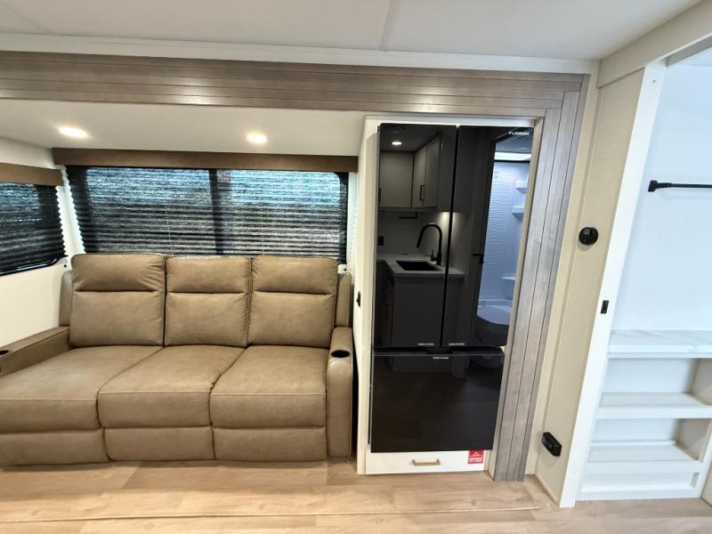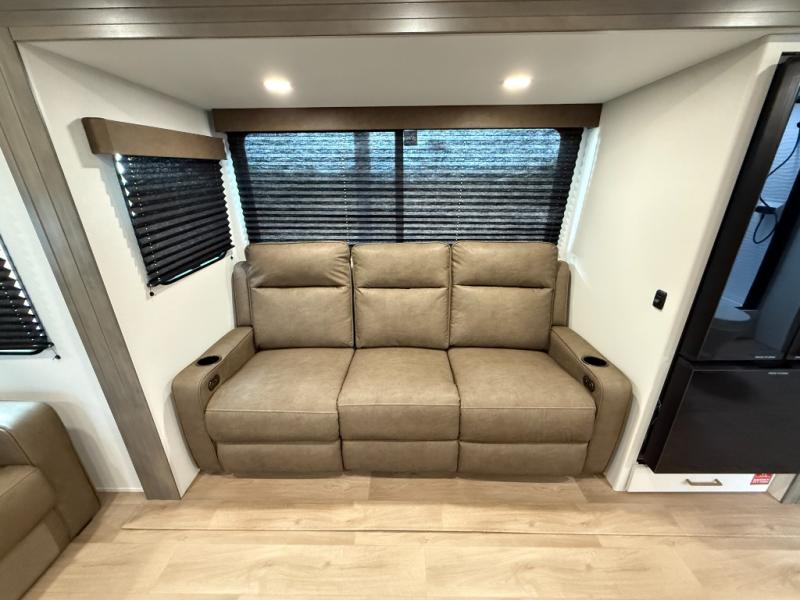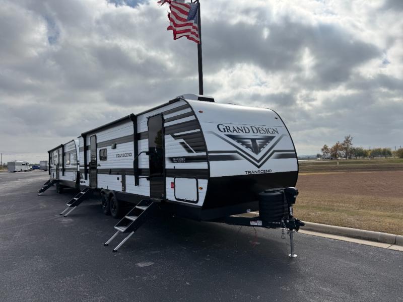 With any Transcend travel trailer by Grand Design, you will enjoy upscale appointments and convenient amenities to make each camping experience one to remember! The Quad Seal technology, residential insulated walls, plus heated and enclosed underbelly with suspended tanks make these units solid and durable. There is a black automotive glass door outside, along with a Safe-T-Rail assist on the main entry door, backup camera prep, and a universal docking station. JBL interior and exterior speakers plus a JBL head unit will let you listen to your favorite tunes as you visit under the power awning with LED strip lights. Inside, you'll enjoy multiple outlets to keep your gadgets charged, thermoformed and seamless countertops, and a 6' 6" interior height so you won't feel closed in. The Solar Prep Package will allow you to enjoy off-grid capabilities with a 200W solar panel, which is wired for up to 600W, a 30 AMP Bluetooth solar controller, a 2000W inverter prep, and more!