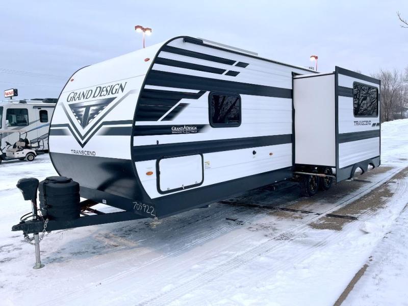 With any Transcend travel trailer by Grand Design, you will enjoy upscale appointments and convenient amenities to make each camping experience one to remember! The Quad Seal technology, residential insulated walls, plus heated and enclosed underbelly with suspended tanks make these units solid and durable. There is a black automotive glass door outside, along with a Safe-T-Rail assist on the main entry door, backup camera prep, and a universal docking station. JBL interior and exterior speakers plus a JBL head unit will let you listen to your favorite tunes as you visit under the power awning with LED strip lights. Inside, you'll enjoy multiple outlets to keep your gadgets charged, thermoformed and seamless countertops, and a 6' 6" interior height so you won't feel closed in. The Solar Prep Package will allow you to enjoy off-grid capabilities with a 200W solar panel, which is wired for up to 600W, a 30 AMP Bluetooth solar controller, a 2000W inverter prep, and more!