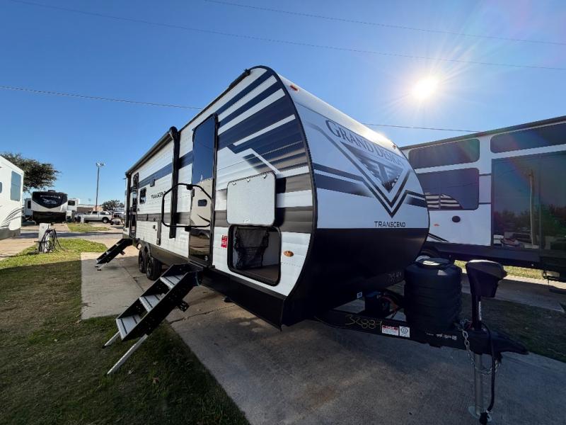 With any Transcend travel trailer by Grand Design, you will enjoy upscale appointments and convenient amenities to make each camping experience one to remember! The Quad Seal technology, residential insulated walls, plus heated and enclosed underbelly with suspended tanks make these units solid and durable. There is a black automotive glass door outside, along with a Safe-T-Rail assist on the main entry door, backup camera prep, and a universal docking station. JBL interior and exterior speakers plus a JBL head unit will let you listen to your favorite tunes as you visit under the power awning with LED strip lights. Inside, you'll enjoy multiple outlets to keep your gadgets charged, thermoformed and seamless countertops, and a 6' 6" interior height so you won't feel closed in. The Solar Prep Package will allow you to enjoy off-grid capabilities with a 200W solar panel, which is wired for up to 600W, a 30 AMP Bluetooth solar controller, a 2000W inverter prep, and more!