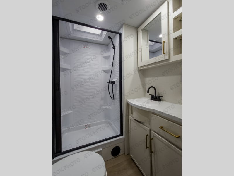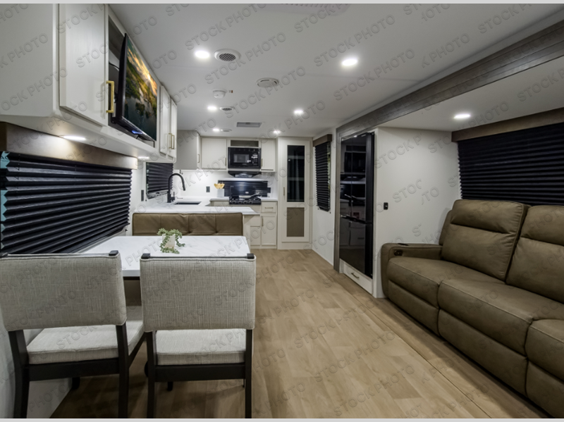If you're looking for a comfortable travel trailer with a smart layout and inviting living space, this is the one! You’ll appreciate how the design keeps everything open while still giving you the dedicated areas you need to relax, cook, and enjoy time at camp. In the back, the rear kitchen provides generous counterspace and easy organization for meal prep, along with a nearby pantry to keep food and essentials within reach. Across from the main living area, theater seating creates a cozy place to unwind after a day outdoors, perfectly positioned for viewing the 32" TV so you can enjoy movies, shows, or game day in comfort. Altogether, this layout delivers the convenience and comfort that make every getaway feel just right.