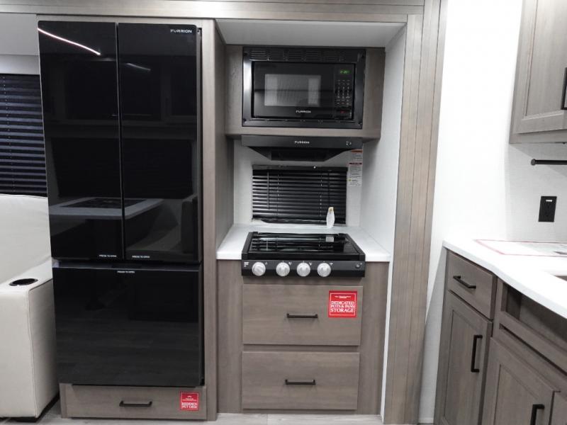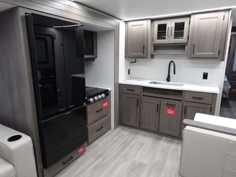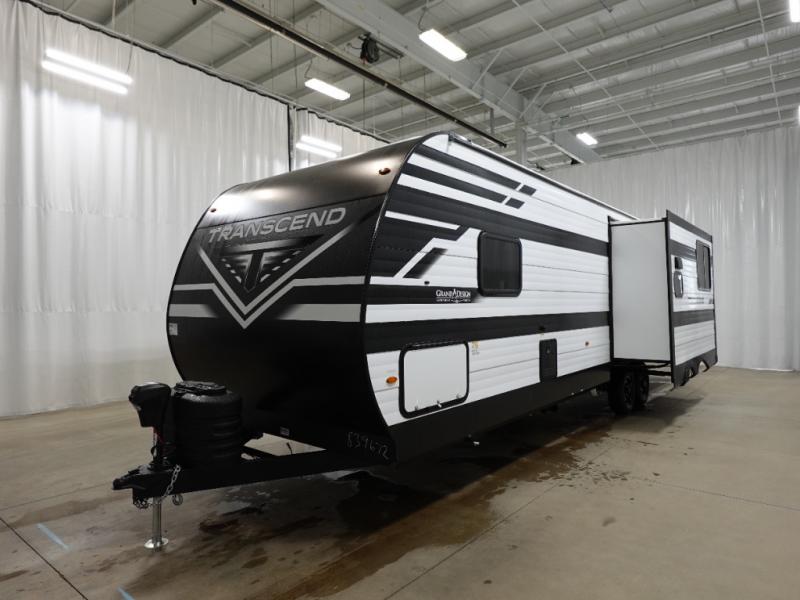 With any Transcend travel trailer by Grand Design, you will enjoy upscale appointments and convenient amenities to make each camping experience one to remember! The Quad Seal technology, residential insulated walls, plus heated and enclosed underbelly with suspended tanks make these units solid and durable. There is a black automotive glass door outside, along with a Safe-T-Rail assist on the main entry door, backup camera prep, and a universal docking station. JBL interior and exterior speakers plus a JBL head unit will let you listen to your favorite tunes as you visit under the power awning with LED strip lights. Inside, you'll enjoy multiple outlets to keep your gadgets charged, thermoformed and seamless countertops, and a 6' 6" interior height so you won't feel closed in. The Solar Prep Package will allow you to enjoy off-grid capabilities with a 200W solar panel, which is wired for up to 600W, a 30 AMP Bluetooth solar controller, a 2000W inverter prep, and more!
